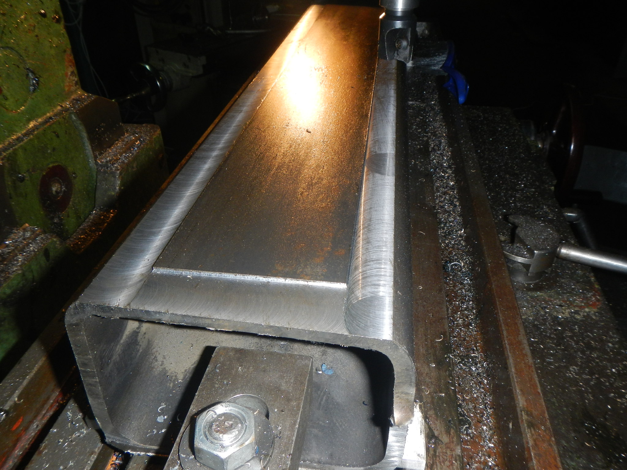 Перевернули трубу, выставили. Попробовали фрезернуть пазы под рельсы. Точнее пока сделали тестовый рез.
