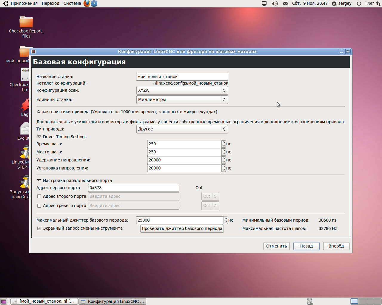 Настройка осей станка в EMC2 LinuxCNC