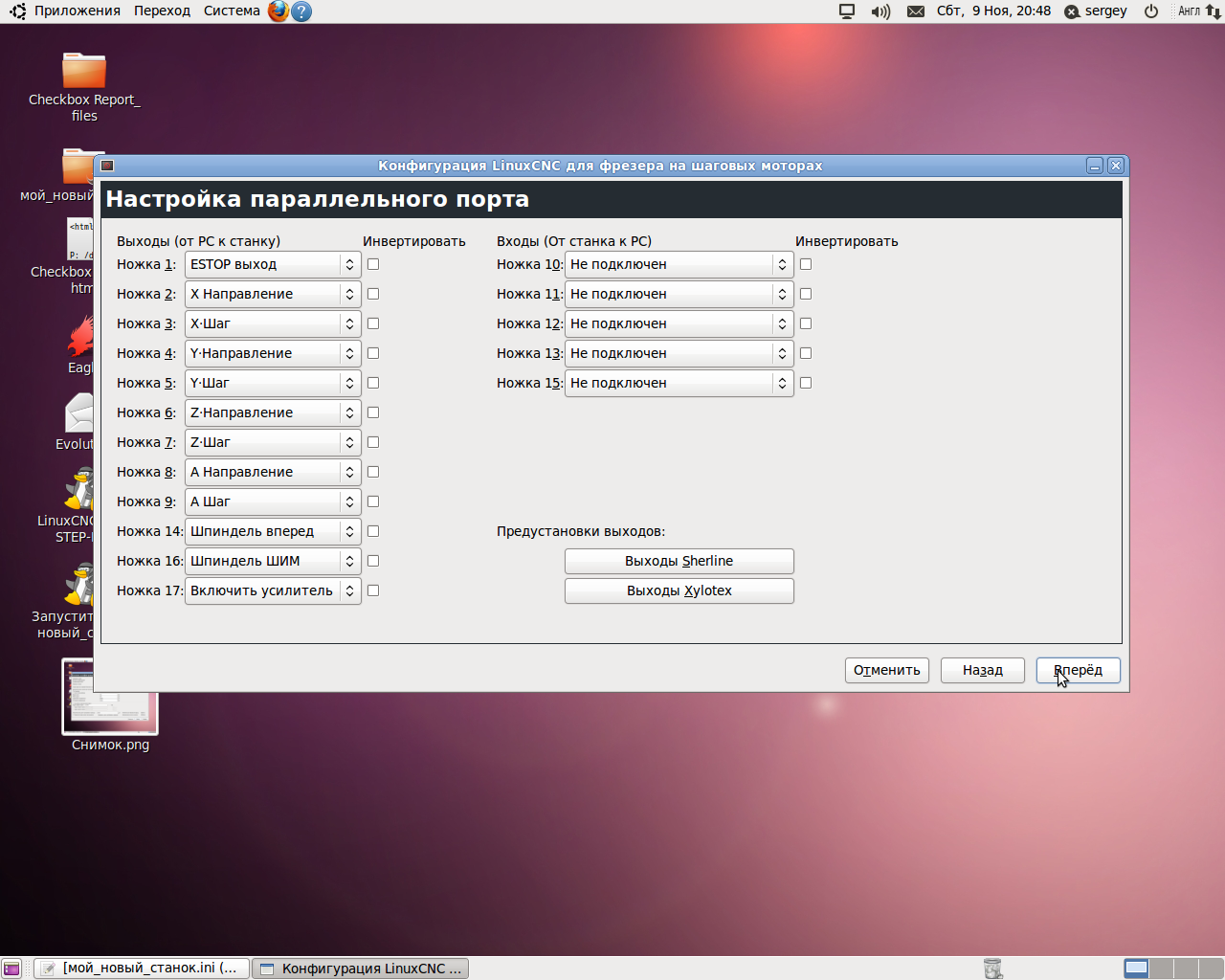 Конфигурация EMC2 LinuxCNC