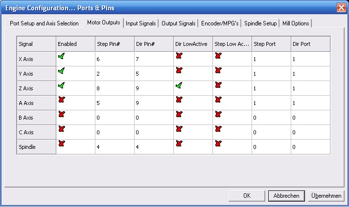 Итак, что вообще вызвало написать вопрос: Фрезеровал вчера деталюшку. Все ок получалось, начал фрезеровать вторую деталюшку, программа останавливается в произвольном месте, видно как меняются координаты в программе, но ось стоит, потом "Ах, да.. мне ехать надо, подумала ось и поехала..." но при этом отключается шпиндель. Далее просто все перепробовал, и сидел игрался на клавиатуре стрелками -ездил осями, и тут в один момент включается шпиндель, координаты на экране в программе прибавляются, но ось стоит, шпиндель работает еще секунд 10, потом выключается и снова я могу стрелками перемещать оси... но координаты то уже не те получаются, я то нагнал координаты когда оси стояли. В автоматическом режиме так же проблемы. Не знаю что делать... уже раз 30 переустановил перенастроил, и раз 50 перепроверил все настройки - нету ничего к чему можно было бы придраться. ..., Хотя по самому началу, пол года назад когда все только собирал - вышла проблемулина, я подключил, скажем на LPT1 (0x378) к определенным пинам свою электронику, и тут сразу же мне отказало раоту на одном из пинов порта, потом я долго мучал мучал порт, ничего не получалось, я перепаял просто провод на другой пин - все поехало. и ехало до вчера. Я думал может быть порт накрылся... тут через написанную программку(умею программировать софт ит.д. и работать с такими универсальными портами...) решил проверить порт... подключил свою кустарную электронику - работает тот пин как делать нечего, а в программе Mach3 не идет сигнал по этому пину... осциллографом проверил - нет ничего там ,если стараться что-то сделать через Mach3...Вот не знаю в какую сторону думать уже.....в один момент все накрылось как бы....