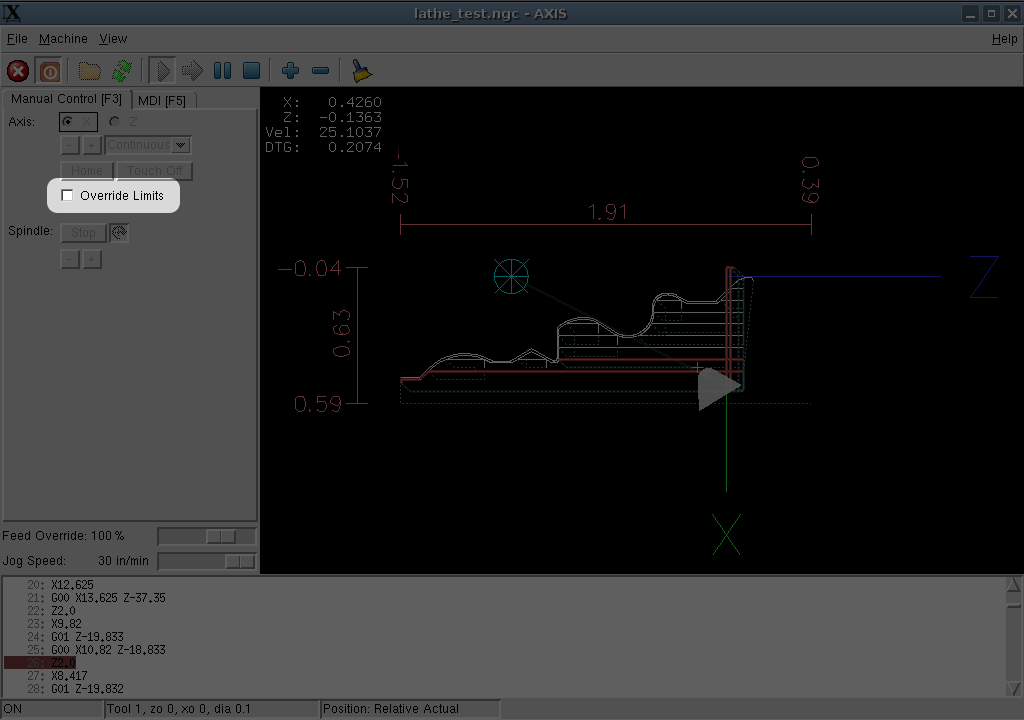 A: EMC2 отказывается выполнять программы до тех пор пока не найдены начала осей потому, что EMC2 должен точно знать в каком положении находится станок, чтобы не дать ему выехать за пределы осей. Настоятельно рекомендую установить концевики и делать поиск нулей при каждом запуске EMC2 (при наличии концевиков это делается нажатием одной клавиши). Если концевиков нет, начала оси можно выставлять вручную.