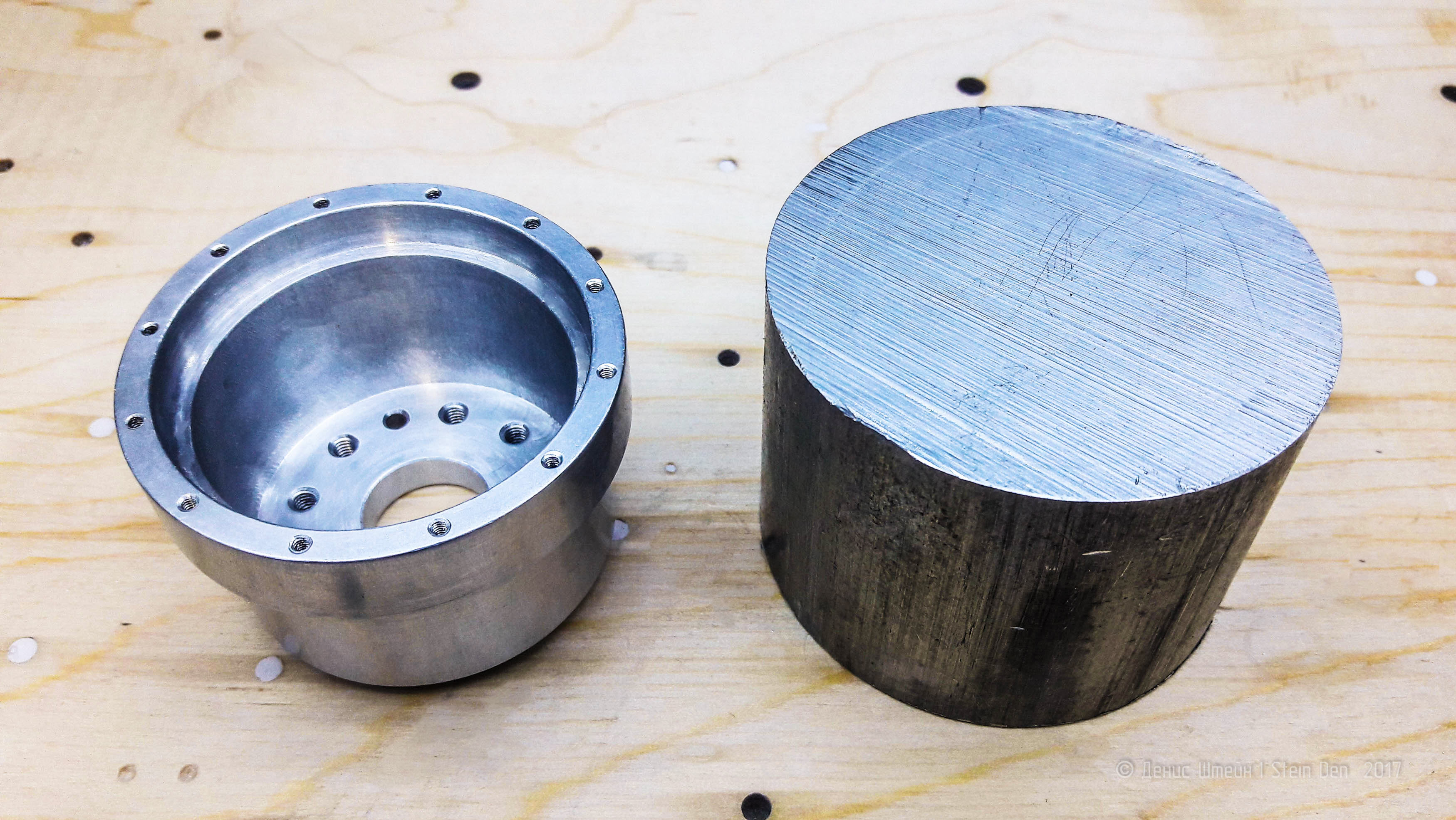 После некоторый паузы, связанной с эпичным инцидентом по поводу моего полета БПЛА в Славской районе, Калининградской области (предыстория внизу статьи http://engineering-ru.livejournal.com/498150.html ) , я продолжил работу над одним из своих проектов. Выпилил детальку из куска Д16Т диаметром 70мм, высотой 50мм.
