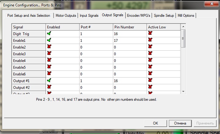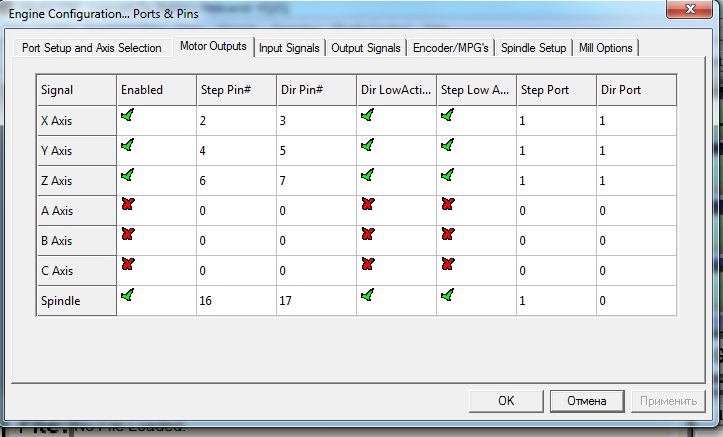 Боюсь уже не поможет.Движения по осям нет,но МАЧ показывает изменение координат.Шпиндель молотит постоянно,выключить можно лишь обесточив частотник.
