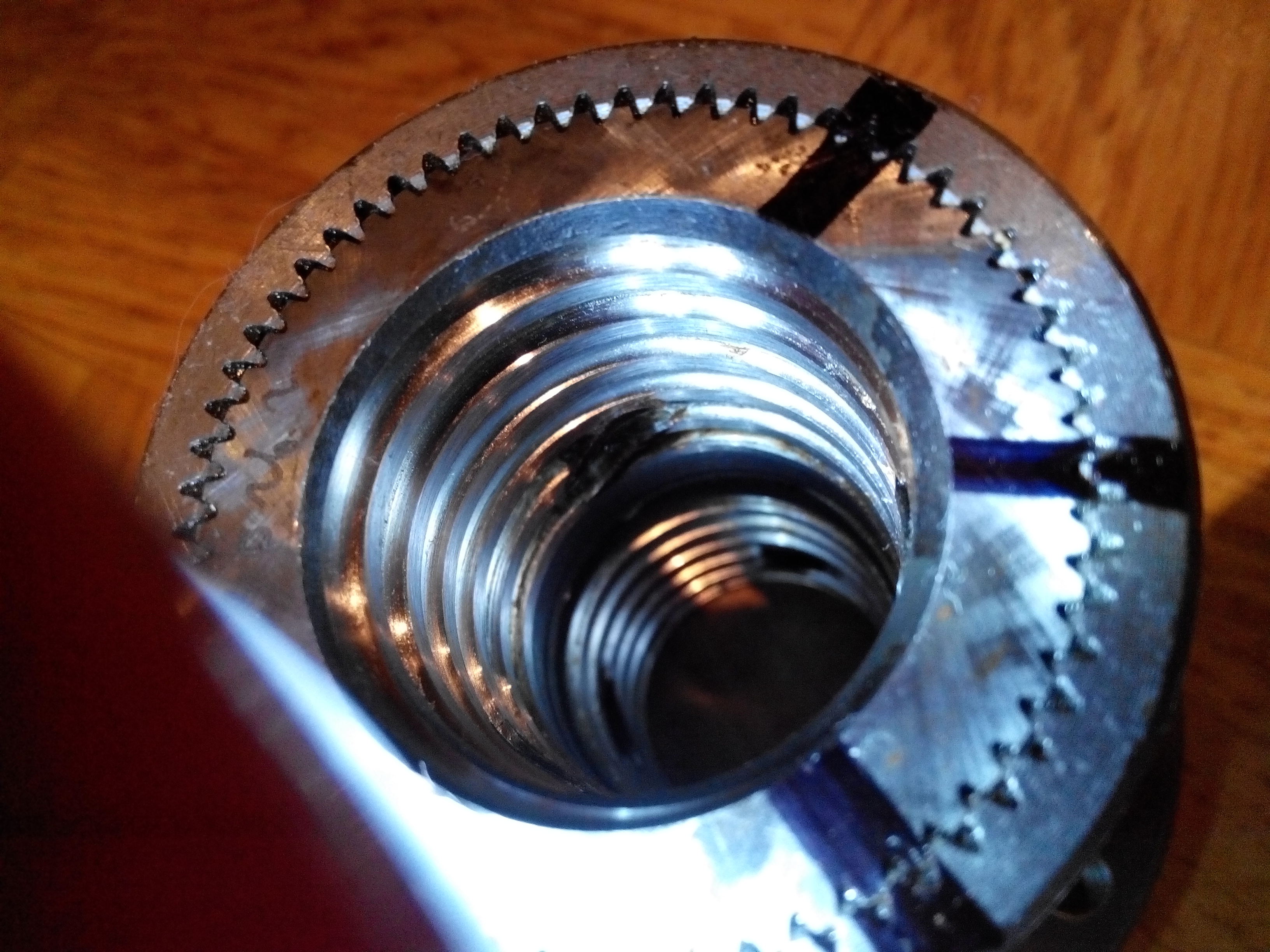 Пытался снять гайку ШВП и поставить другой стороной. Сделал трубку, скрутил на нее гайку, развернул, одна половина гайки накрутилась легко, а вторая пару оборотов и заклинила. Вперед не идет, назад тоже. Кое как получилось снять гайку, шла очень туго. Шарики все вытянул, промыл. Что дальше делать не знаю...