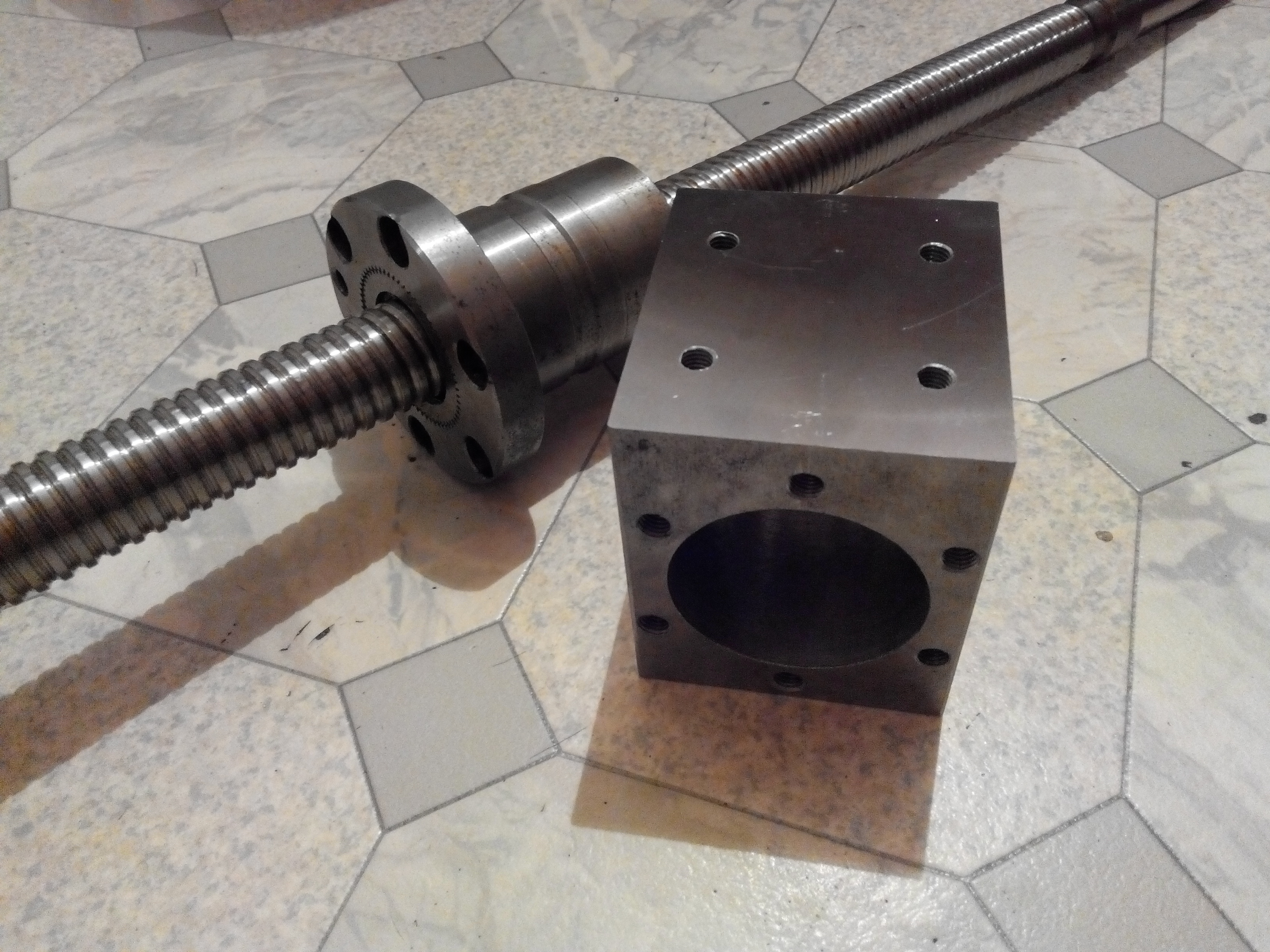Отдал блок гайки на доработку обратно на завод. На чертеже расстояние от центра отверстия для установки гайки до плоскости прилягания 50±0.015мм, они в первый раз сделали 50.8мм, на второй раз я им везде где только можно указал, что эти 8 десятых лишние. Получил позавчера - сняли 8 соток. У меня просто нет слов. Поеду на днях к обычным шабашникам, пусть при мне снимут 0.72мм. Не хочу больше с этим заводом связываться.