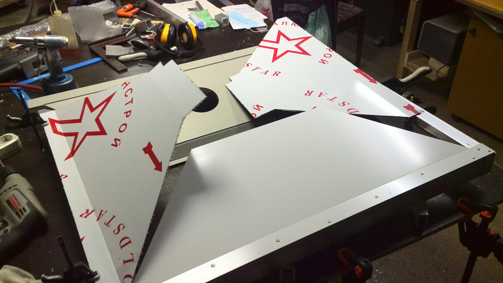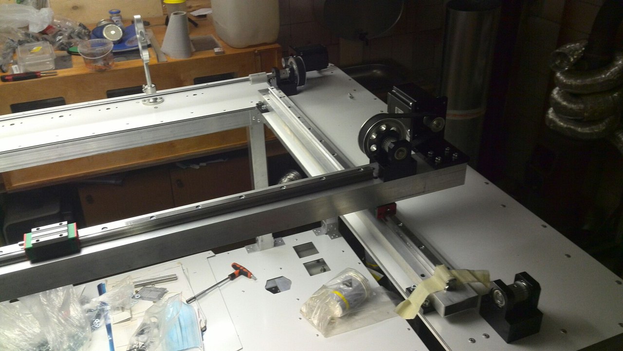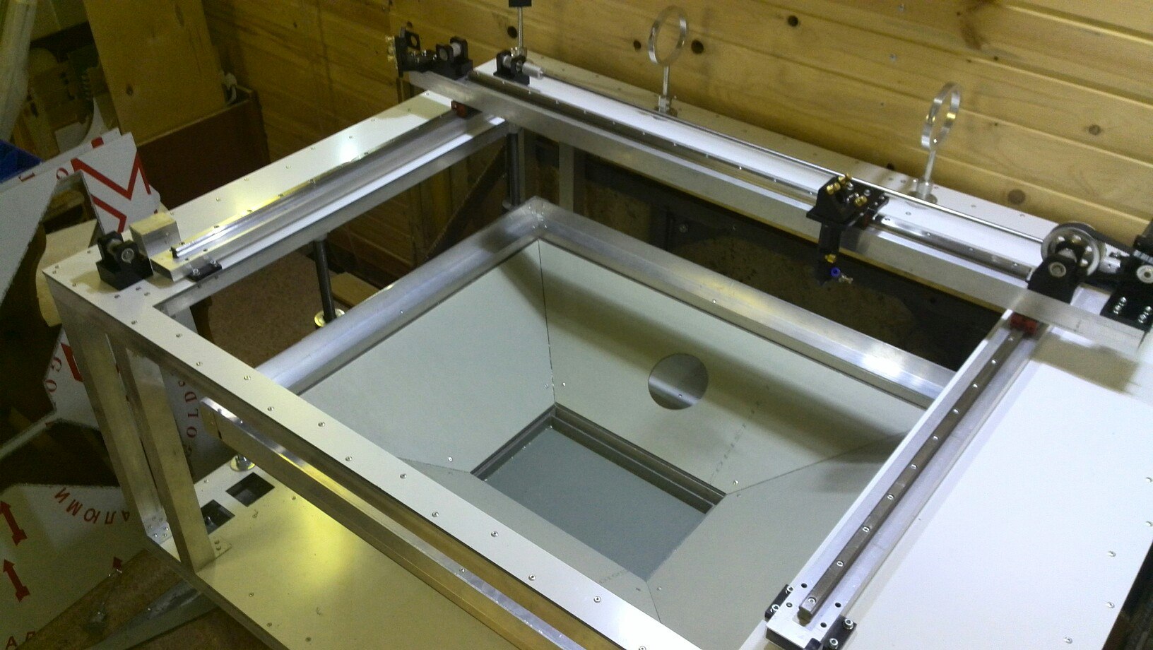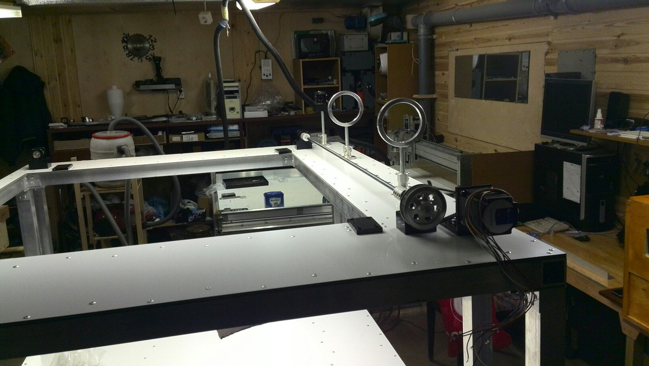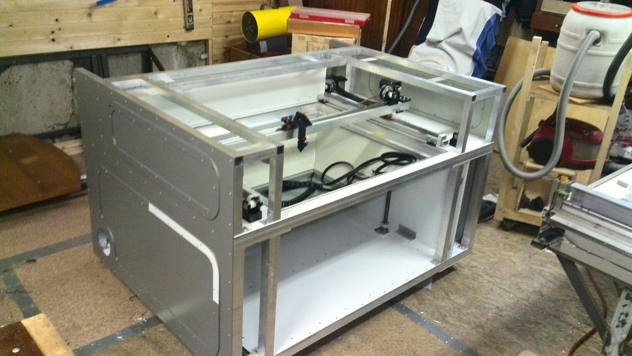 Раму делаю сборную из алюминия, (вот сейчас и делаю =)) Электроника будет в столе, вытяжка уже стоит на своем месте.