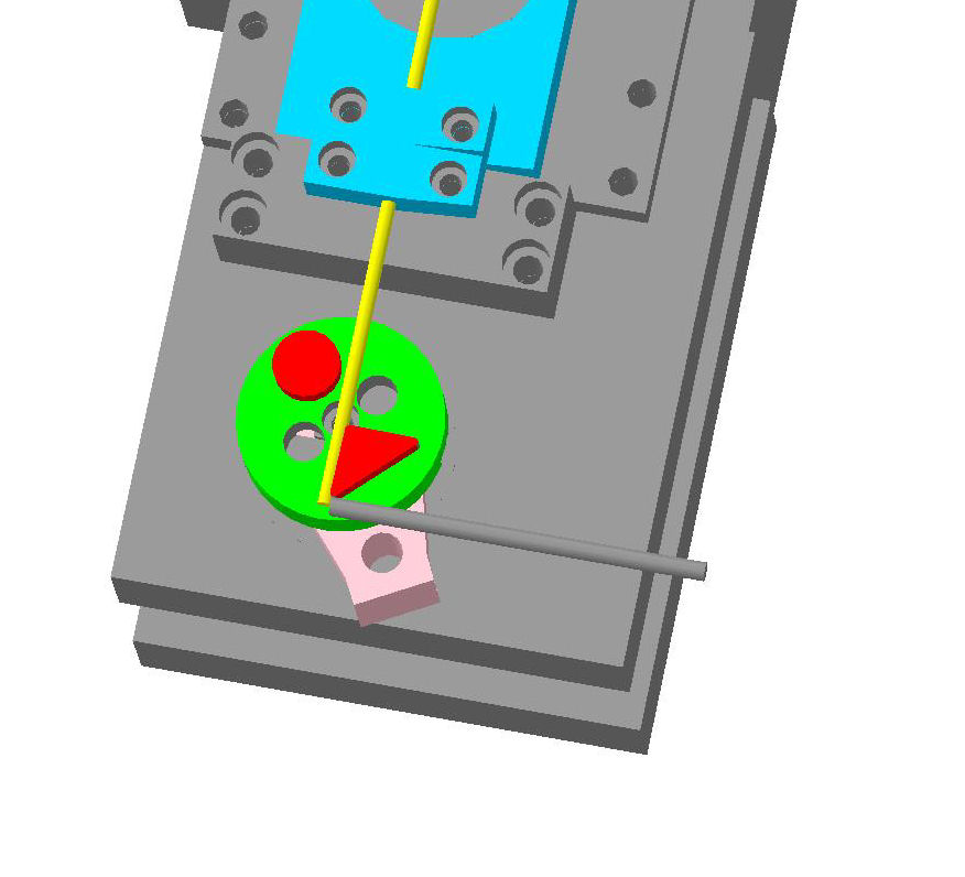 P я обозначил вращение ножа, именно в этом месте отрубается проволока между двумя ножами.