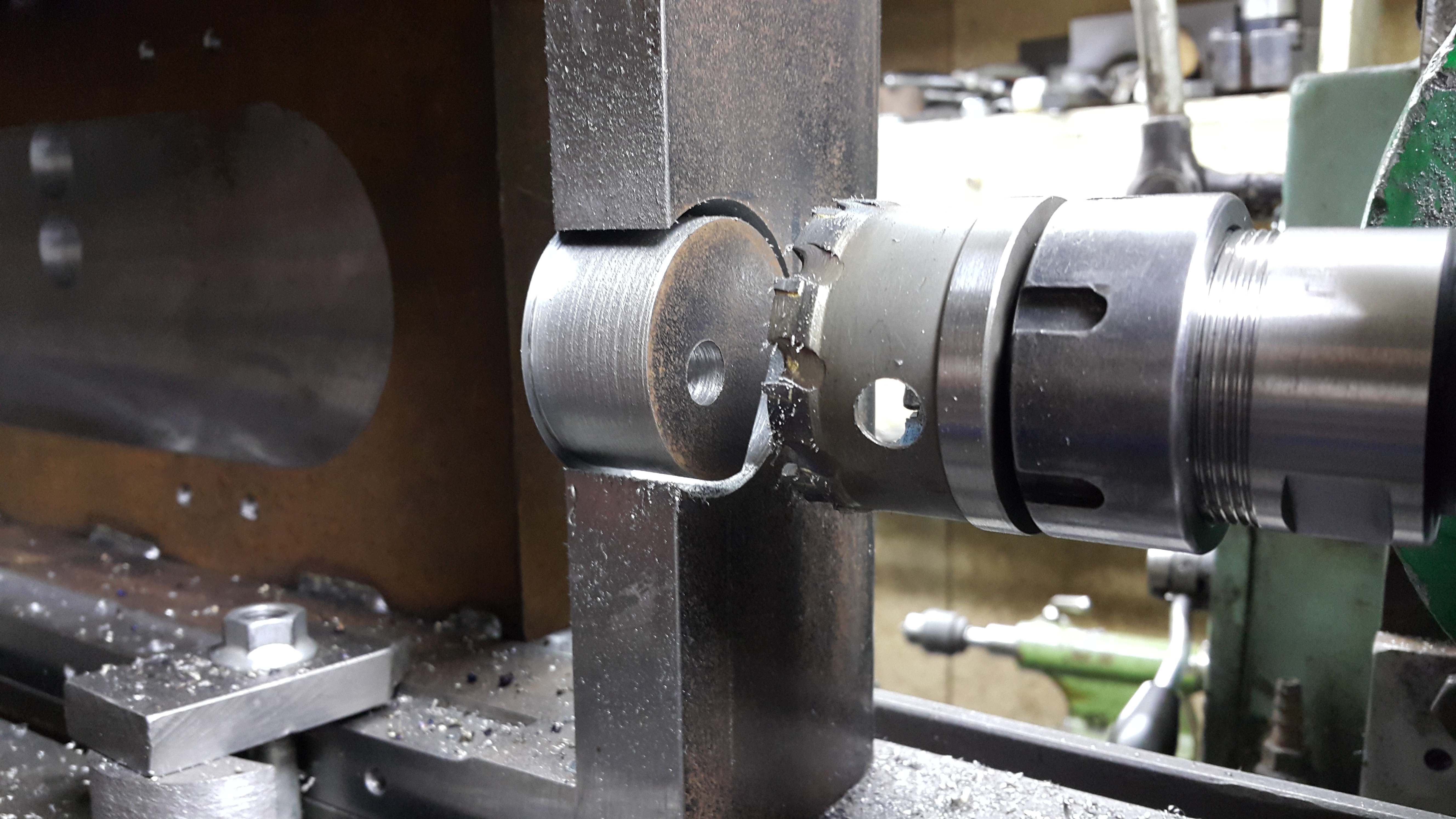 Повернул голову на 90 градусов. Обкатать выставил. Просверлил. Торцанул плоскость прилегания под опору винта.