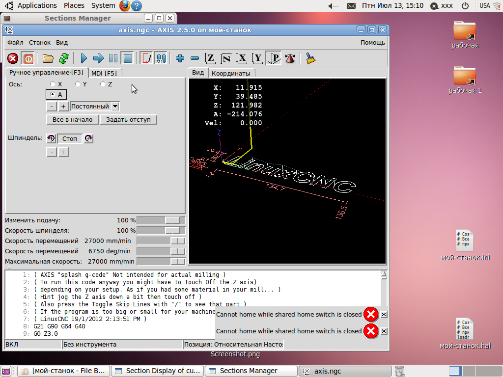 Обсуждение установки, настройки и использования LinuxCNC. Вопросы по Gкоду.