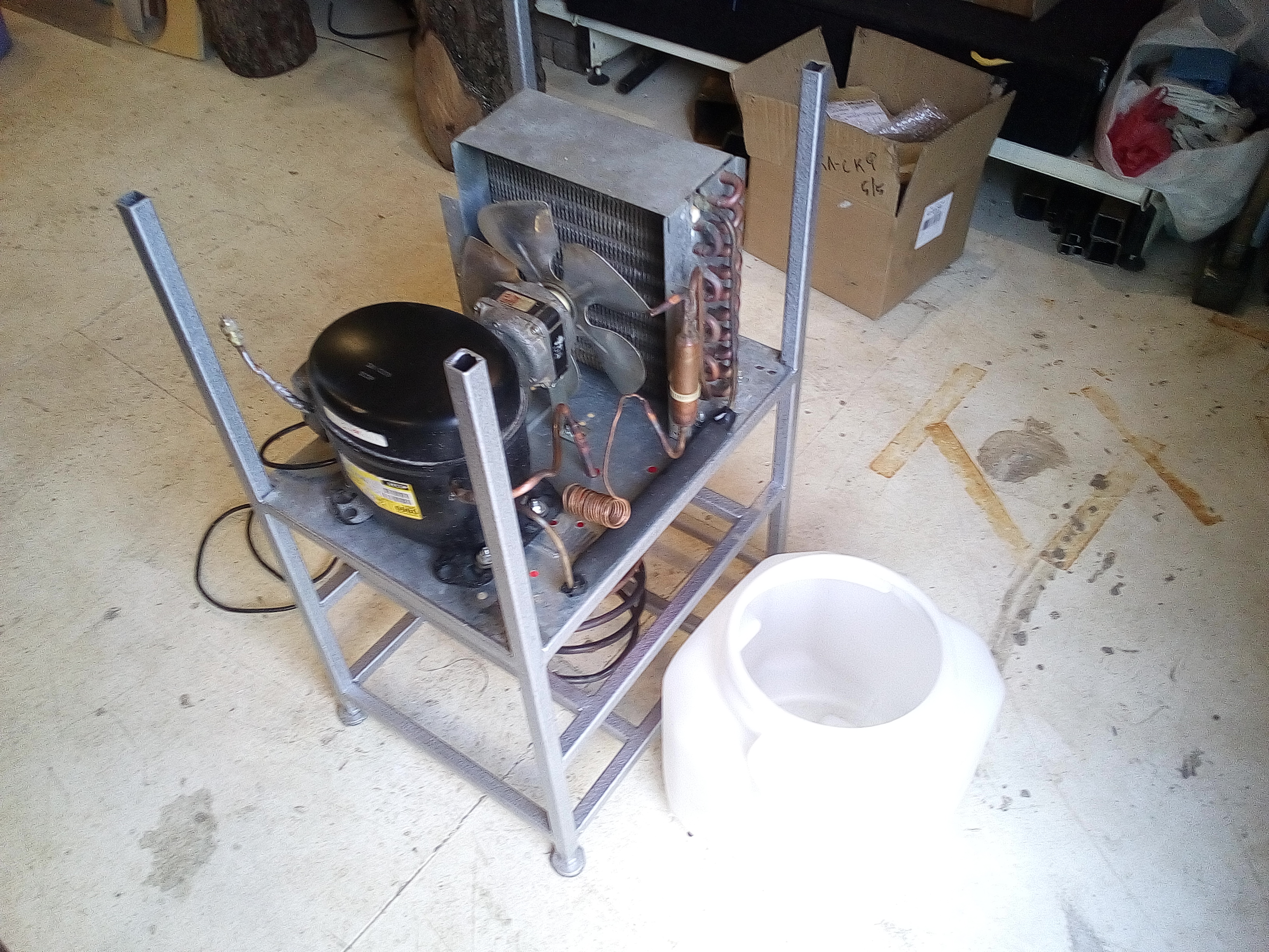 Пока суть да дело, начал собирать чиллер для трубки. За основу взял испаритель от чего-то промышленного, холодильный компрессор.