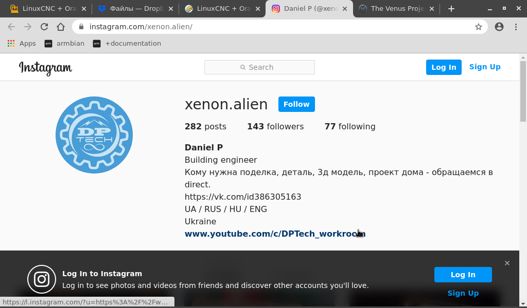 5e24df5174a0d533b288a6490ab8049\u0026oe=5F018493","thumbnail_resources":[{"src":"https://instagram.flwo5-1.fna.fbcdn.net/v/t51.2885-15/e35/s150x150/99115614_625887738137276_2012392215845753165_n.jpg?_nc_ht=instagram.flwo5-1.fna.fbcdn.net\u0026_nc_cat=108\u0026_nc_ohc=1gz6HZyjBMIAX_1aFUq\u0026oh=a5d8412a8110a486aab17747b20a8910\u0026oe=5F003736","config_width":150,"config_height":150},{"src":"https://instagram.flwo5-1.fna.fbcdn.net/v/t51.2885-15/e35/s240x240/99115614_625887738137276_2012392215845753165_n.jpg?_nc_ht=instagram.flwo5-1.fna.fbcdn.net\u0026_nc_cat=108\u0026_nc_ohc=1gz6HZyjBMIAX_1aFUq\u0026oh=290863d87ebb3fc59bdb882779a1ae20\u0026oe=5F030600","config_width":240,"config_height":240},{"src":"https://instagram.flwo5-1.fna.fbcdn.net/v/t51.2885-15/e35/s320x320/99115614_625887738137276_2012392215845753165_n.jpg?_nc_ht=instagram.flwo5-1.fna.fbcdn.net\u0026_nc_cat=108\u0026_nc_ohc=1gz6HZyjBMIAX_1aFUq\u0026oh=93bacac93e3947bbdf171e99427b7a74\u0026oe=5F01DAC6","config_width":320,"config_height":320},{"src":"https://instagram.flwo5-1.fna.fbcdn.net/v/t51.2885-15/e35/s480x480/99115614_625887738137276_2012392215845753165_n.jpg?_nc_ht=instagram.flwo5-1.fna.fbcdn.net\u0026_nc_cat=108\u0026_nc_ohc=1gz6HZyjBMIAX_1aFUq\u0026oh=88c4d6a43bfa1ba2f21b0536b721cf1c\u0026oe=5F0342A0","config_width":480,"config_height":480},{"src":"https://instagram.flwo5-1.fna.fbcdn.net/v/t51.2885-15/sh0.08/e35/s640x640/99115614_625887738137276_2012392215845753165_n.jpg?_nc_ht=instagram.flwo5-1.fna.fbcdn.net\u0026_nc_cat=108\u0026_nc_ohc=1gz6HZyjBMIAX_1aFUq\u0026oh=15e24df5174a0d533b288a6490ab8049\u0026oe=5F018493","config_width":640,"config_height":640}]}},{"node":{"__typename":"GraphVideo","id":"2314886655873667691","shortcode":"CAgISYSpFJr","dimensions":{"height":750,"width":750},"display_url":"https://instagram.flwo5-1.fna.fbcdn.net/v/t51.2885-15/e35/99077722_171174031000847_271826945197635691_n.jpg?_nc_ht=instagram.flwo5-1.fna.fbcdn.net\u0026_nc_cat=111\u0026_nc_ohc=FULYsSSePdMAX9eEzzL\u0026oh=d92f0eeaa6e183a7546f425a4721f513\u0026oe=5EDA042C","gating_info":null,"fact_check_overall_rating":null,"fact_check_information":null,"media_preview":"ACoq54Nnk/zqzbeXv/e8qOoBPPpVKrFu6hvn6dvY9qTGi2oikBLjZnkY6Een1pjrCBhG3N2GCOvX07VM7gDPBDEdMeh/Wo2jQKWPHP4j2/z+NIsVII3XKfMVxnkjv79+3vVIugONvT3rWhhUw56Fjz+B6fl/9asdlbJwD19DTRLGVLDC8rYQE461ZtrUM480Er6L1P8A9b1rcnQCHbakZxwq45B79c9M+poBIqxoYlwqhhk8EE49ec4yO/pTinVgNqYOT1A9cA4P+etRw2MoUMxK465OAPz7evFXH/d5eUk4+6PfoAoHHJ6c5x171Je5mxTFVwSWxk8jB5HGe/vUP2tfemvK00jAYy33iP1x7dh69e9H2ZfQ/nTMpNGsEwwaqv2YBizbiT3B6VcP+FNHT8D/ADoFzdCGWZokGzLnBBDcg+56Yx2GDnvVGeaZwBIdzY4A7DuTjvjj2Ga0X56+pqjB/rXPcYpFt6XEt4ii5I+Zuvt6D+v1qXn/ACaUHPX0/rSEDNUYs//Z","owner":{"id":"9003551992","username":"xenon.alien"},"is_video":true,"accessibility_caption":"Video by Daniel P in Berehove, Ukraine.","edge_media_to_caption":{"edges":[{"node":{"text":"MicroCNC Model (X Y axis) for test Orange Pi PC + LinuxCNC + BeagleBone 7 inch 1024x600 capacitive touch screen\ncnc32.ru/orangecnc/\n.\n.\n.\n.\n#orangepipc #raspberrypi #linux #linuxcnc #armbian #arduino #cnc #diy #cnccontroller #cncmachine #orange #code #coder #programmer\n#\u0434\u0438\u0441\u043f\u043b\u0435\u0439 #\u043c\u043e\u043d\u0438\u0442\u043e\u0440 #diy #display #tuochsreen #7inch #1024x600 #\u0441\u0432\u043e\u0438\u043c\u0438_\u0440\u0443\u043a\u0430\u043c\u0438 #\u0441\u0432\u043e\u0438\u043c\u0438\u0440\u0443\u043a\u0430\u043c\u0438 #beaglebone #dptech"}}]},"edge_media_to_comment":{"count":0},"comments_disabled":false,"taken_at_timestamp":1590176042,"edge_liked_by":{"count":16},"edge_media_preview_like":{"count":16},"location":{"id":"253884808","has_public_page":true,"name":"Berehove, Ukraine","slug":"berehove-ukraine"},"thumbnail_src":"https://instagram.flwo5-1.fna.fbcdn.net/v/t51.2885-15/sh0.08/e35/s640x640/99077722_171174031000847_271826945197635691_n.jpg?_nc_ht=instagram.flwo5-1.fna.fbcdn.net\u0026_nc_cat=111\u0026_nc_ohc=FULYsSSePdMAX9eEzzL\u0026oh=d9ec90dd3b0a38576f29393bbc4c5d6c\u0026oe=5EDA4759","thumbnail_resources":[{"src":"https://instagram.flwo5-1.fna.fbcdn.net/v/t51.2885-15/e35/s150x150/99077722_171174031000847_271826945197635691_n.jpg?_nc_ht=instagram.flwo5-1.fna.fbcdn.net\u0026_nc_cat=111\u0026_nc_ohc=FULYsSSePdMAX9eEzzL\u0026oh=4854b6b97eb67c6cc11d689da433c084\u0026oe=5EDA037A","config_width":150,"config_height":150},{"src":"https://instagram.flwo5-1.fna.fbcdn.net/v/t51.2885-15/e35/s240x240/99077722_171174031000847_271826945197635691_n.jpg?_nc_ht=instagram.flwo5-1.fna.fbcdn.net\u0026_nc_cat=111\u0026_nc_ohc=FULYsSSePdMAX9eEzzL\u0026oh=b24254a71def4a2887336840fbe77781\u0026oe=5EDA618D","config_width":240,"config_height":240},{"src":"https://instagram.flwo5-1.fna.fbcdn.net/v/t51.2885-15/e35/s320x320/99077722_171174031000847_271826945197635691_n.jpg?_nc_ht=instagram.flwo5-1.fna.fbcdn.net\u0026_nc_cat=111\u0026_nc_ohc=FULYsSSePdMAX9eEzzL\u0026oh=2588b332f1c51b7266e604544f5da57c\u0026oe=5ED9F635","config_width":320,"config_height":320},{"src":"https://instagram.flwo5-1.fna.fbcdn.net/v/t51.2885-15/e35/s480x480/99077722_171174031000847_271826945197635691_n.jpg?_nc_ht=instagram.flwo5-1.fna.fbcdn.net\u0026_nc_cat=111\u0026_nc_ohc=FULYsSSePdMAX9eEzzL\u0026oh=df40e240d5761e8a2795b452e12d6a2b\u0026oe=5ED9DBA9","config_width":480,"config_height":480},{"src":"https://instagram.flwo5-1.fna.fbcdn.net/v/t51.2885-15/sh0.08/e35/s640x640/99077722_171174031000847_271826945197635691_n.jpg?_nc_ht=instagram.flwo5-1.fna.fbcdn.net\u0026_nc_cat=111\u0026_nc_ohc=FULYsSSePdMAX9eEzzL\u0026oh=d9ec90dd3b0a38576f29393bbc4c5d6c\u0026oe=5EDA4759","config_width":640,"config_height":640}],"felix_profile_grid_crop":null,"video_view_count":131}},{"node":{"__typename":"GraphSidecar","id":"2314226954769052241","shortcode":"CAdySdwpLJR","dimensions":{"height":1080,"width":1080},"display_url":"https://instagram.flwo5-1.fna.fbcdn.net/v/t51.2885-15/e35/98443973_125233172506589_2481533194647211213_n.jpg?_nc_ht=instagram.flwo5-1.fna.fbcdn.net\u0026_nc_cat=105\u0026_nc_ohc=p-rWGALrV9MAX9rljM0\u