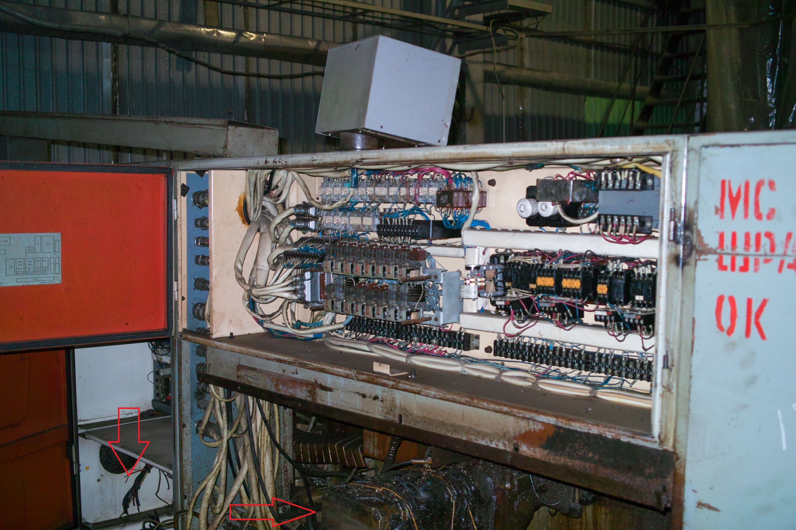 На обоих станках их выдрали. Вот фото второго станка. Раз есть мотор(стрелкой показано) это второй станок. Второй стрелкой показано место где стоял транс и дроссель. Их вырезали и видать сдали на цвет мет.