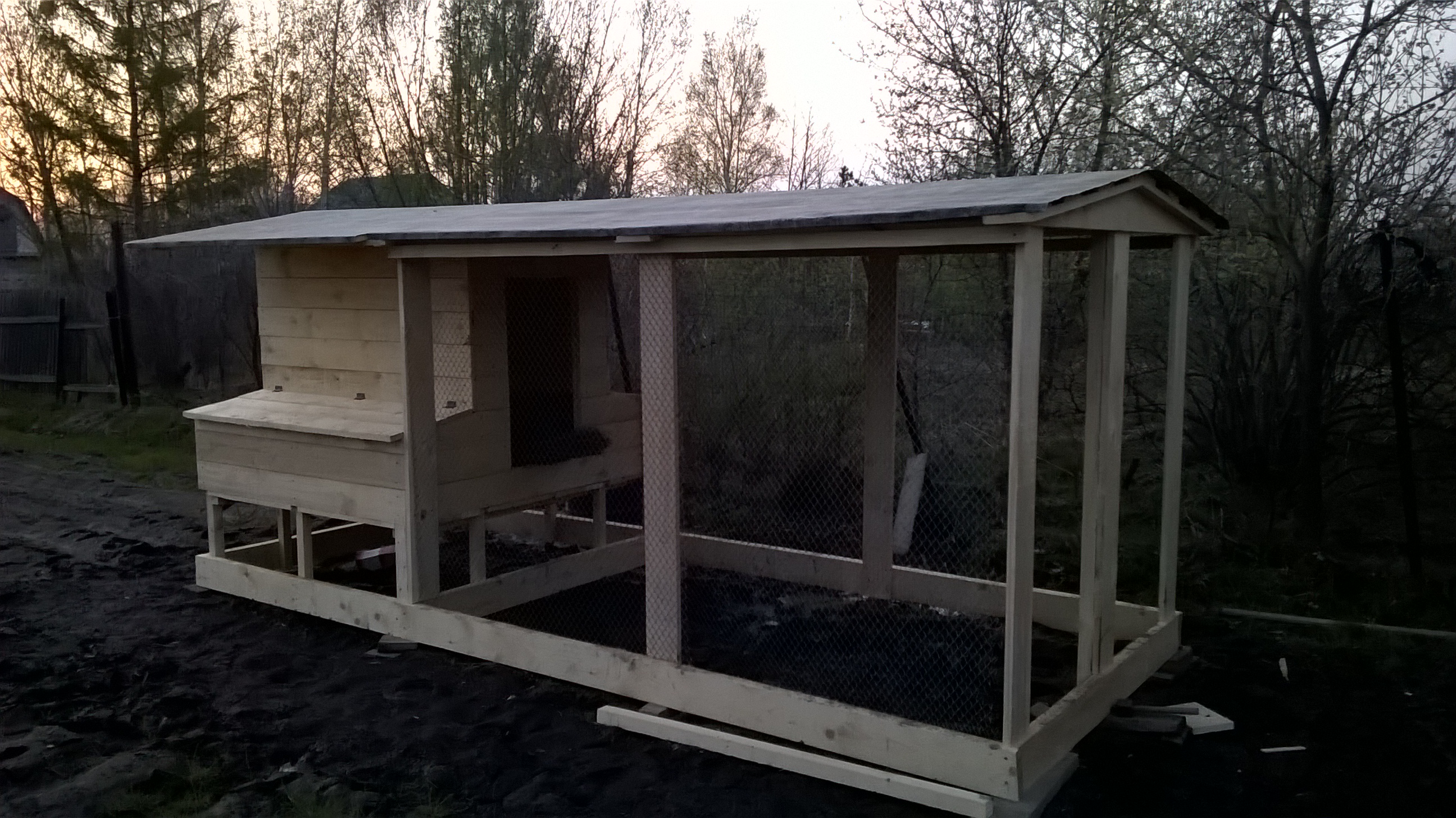 Курятник рассчитан на 10 несушек, откидные крышки отсек (гнезда)для сбора яиц, не заходя в вольер, поэтому и получилась такая форма, а отверстие в одну доску выдвигающийся поддон для чистки.