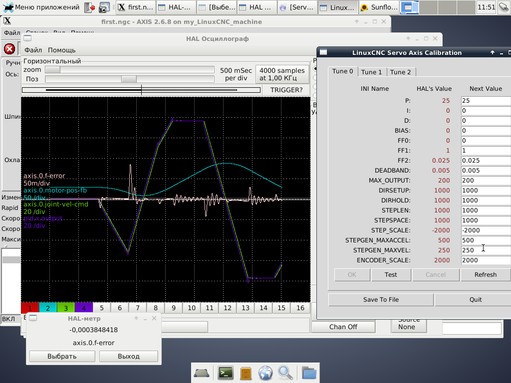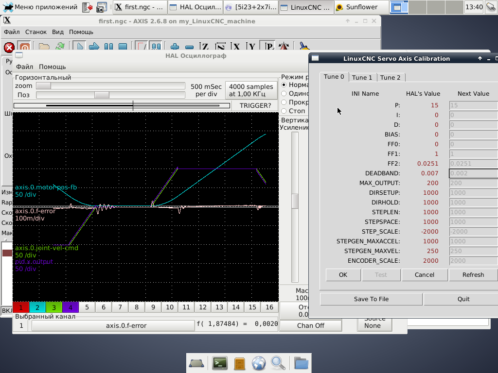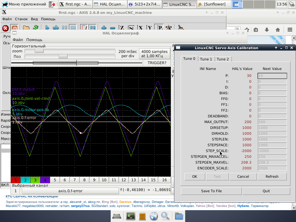 Кстати в самом начале была проблема изза того что енкодер скеил стоял отрицательный. Нада всегда проверять правильно ли стоит.