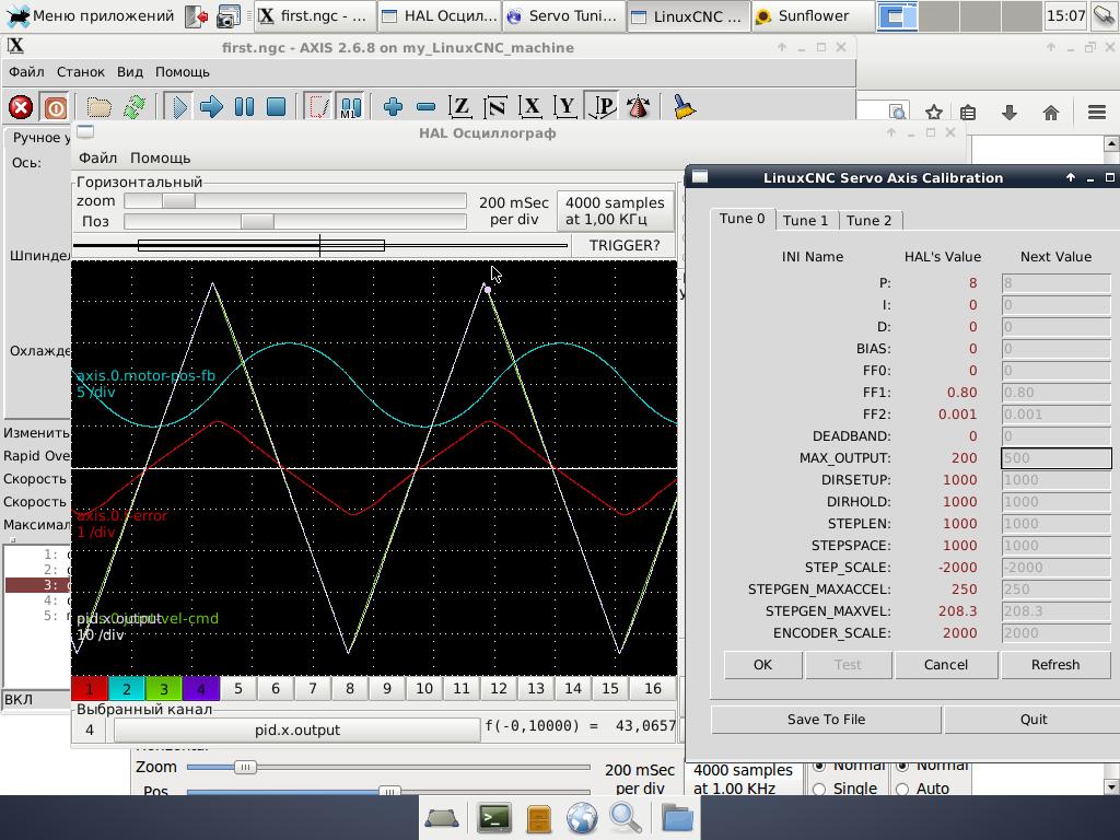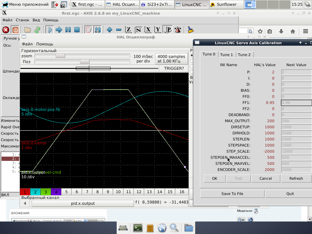 В общем окончательная настройка ПИД переносится до момента установки серв на железо.