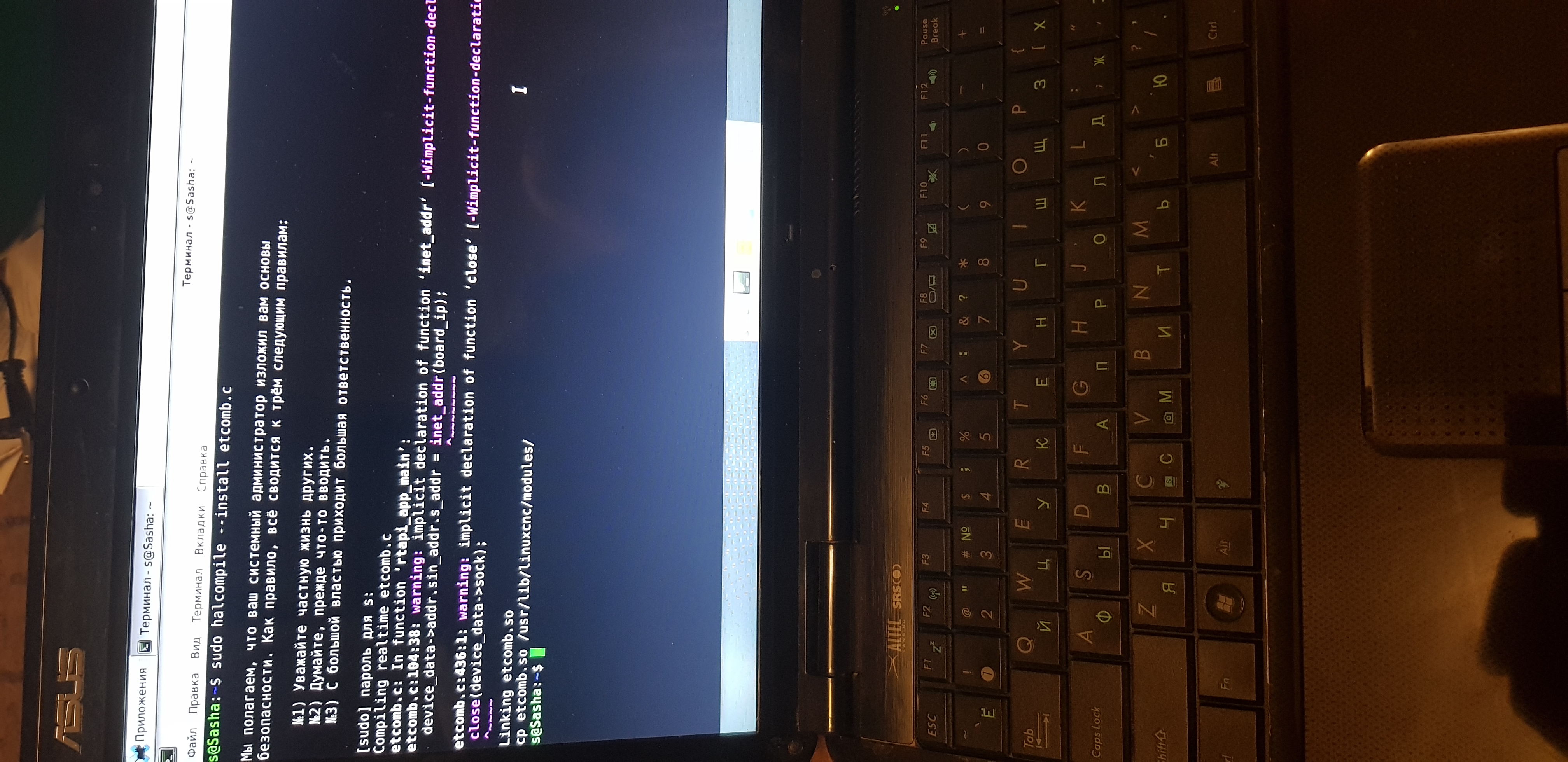 Мой конфиг у меня не стартует, так как карта на работе. Так что пробуй мой конфиг еще раз. Но никаких ошибок с loadrt быть не должно!! Это что-то в системе не то. Как ставил дебиан? как ставил linuxcnc?