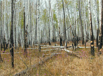 то есть нижний ярус достаточно чистый. кроны начинаются высоко.. метрах в 10-12-15 над землей. низовые пожары на грунте выглядят вот так: