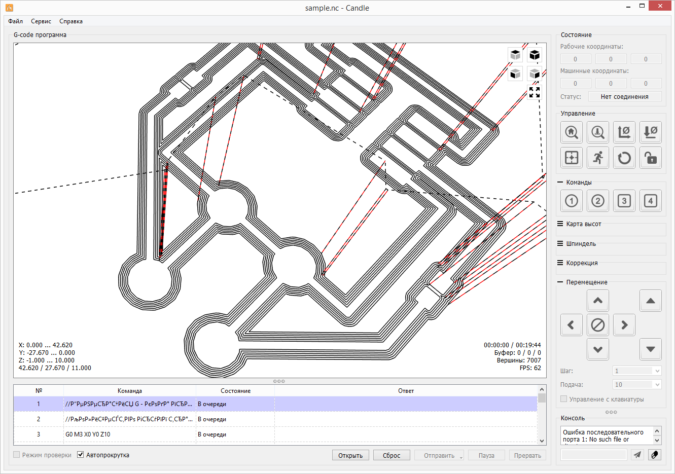 Сгенерировать G-код, и отрыть в Candle или другом сендере: