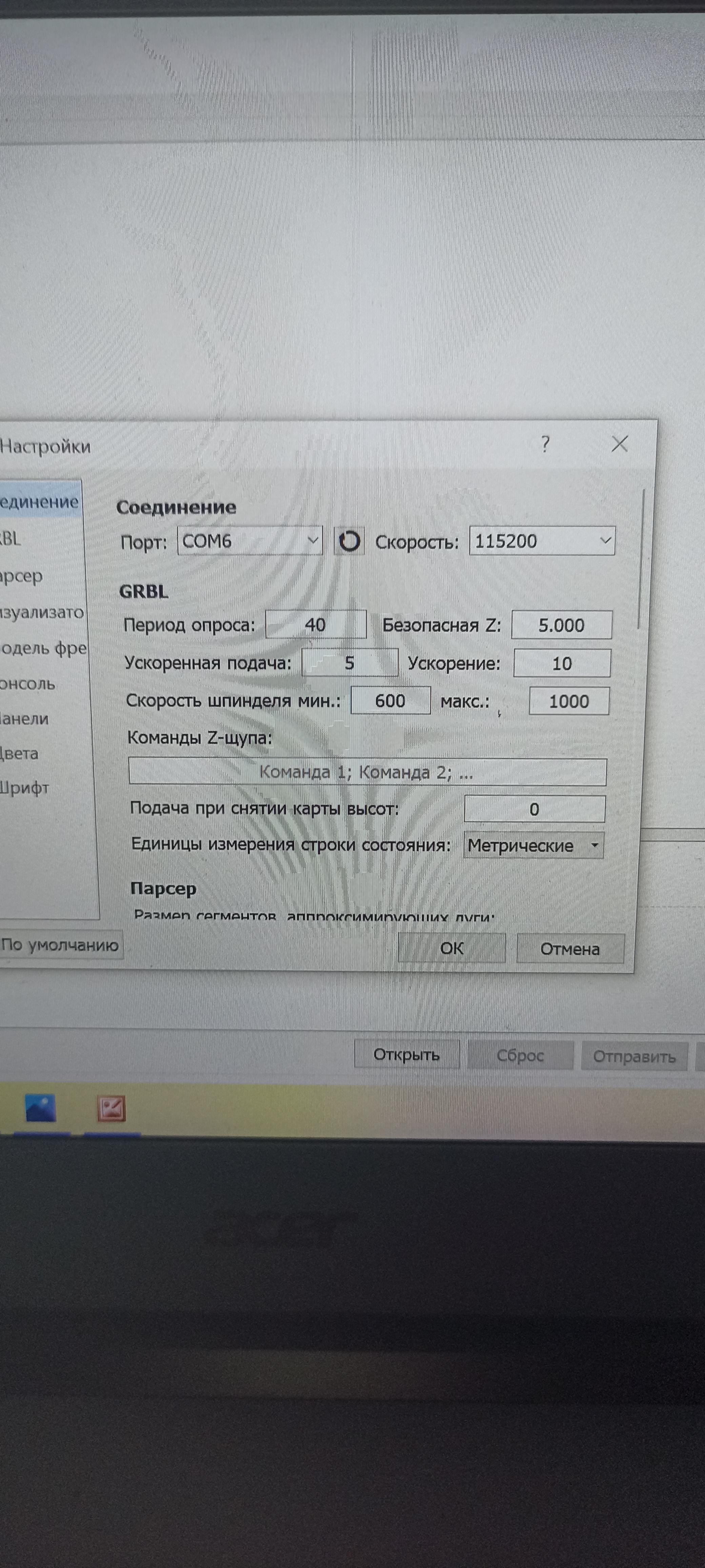 В станке всё работает верно, оси движутся в нужных направлениях, при загрузке уп появилась кнопка создания карты высот, при её нажатии щуп ходит просто квадратом отмеряя точки модели гравировки, но высоту их не снимает, при нажатии отдельной кнопки z - щуп, кнопка не активна, не включается, снизу прикрепил фотографию вот как всё выглядит. Что значат настройки?
