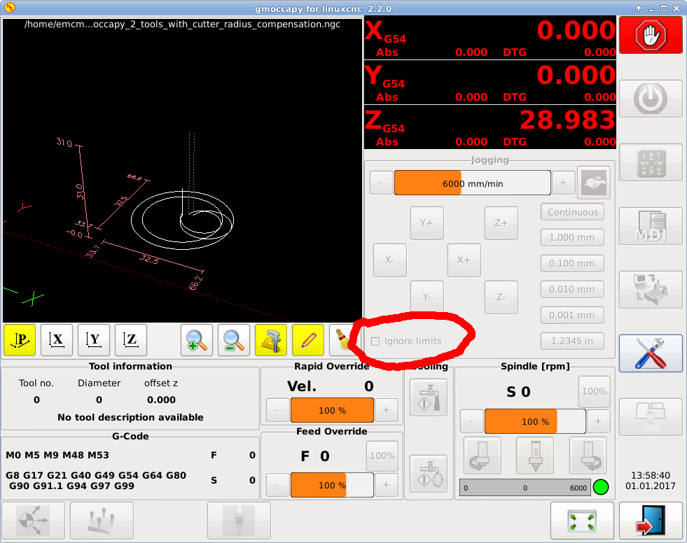 Ситуация.. открыл gmoccapy, управлял в ручную.. наехал на датчик положения. Интерфейс заблокировался. Что-бы убрать ошибку, придётся обесточить станок.. не хотелось бы этого делать.. есть более гуманный способ? Где нибудь в недрах настроек EMC2 решить этот вопрос и разрешить таки с клавитуры в другую сторону сдвинуть ось? Только без извращений с заведением Enable на каждый драйвер..