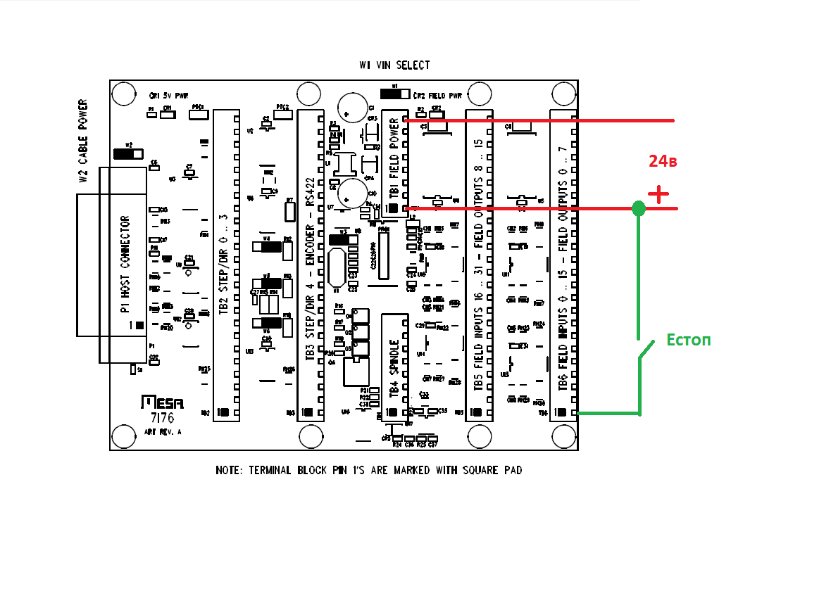 Подключил кнопку Estop (проверил мультиком работает) к 7и76