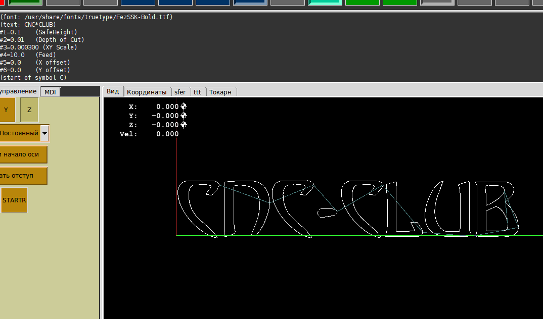 Помещаем наш файл lathe.ngc в папку прописанную в ini [DISPLAY]PROGRAM_PREFIX