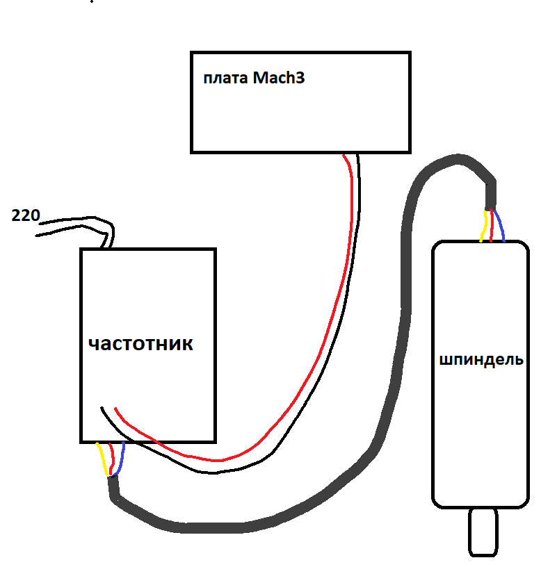 Сегодня я нагнуяс пониже и обнаружил под частотником еще одну точку подключения заземления. Подсоеденил туда првод. Теперь ошибка в Mach3 не светится, можно двигать оси при вращающемся шпинделе, но вот остановить его не получается, только с потенциометра, и соответвственно S-команды пока мне недоступны.