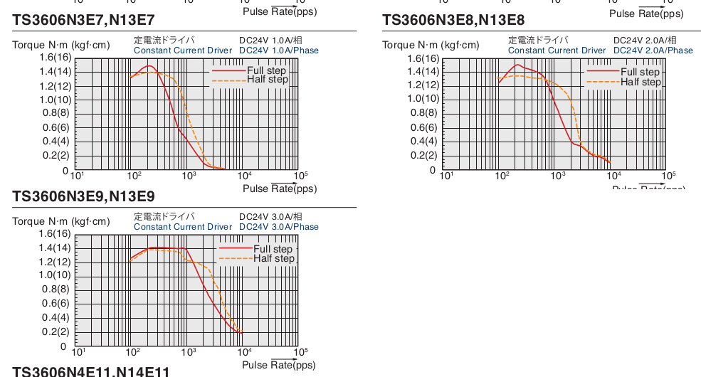 У таких ШД будет разный график зависимости момента от частоты шагов, нам же нужна не максимально возможная подача, а момент в диапазоне рабочих подач. Вот графики для движков одного типоразмера NEMA23 65мм, но с разной индуктивностью. Я у китайцев JKongMotor ШД покупал, ЕМНИП у них до 4А были в NEMA23.