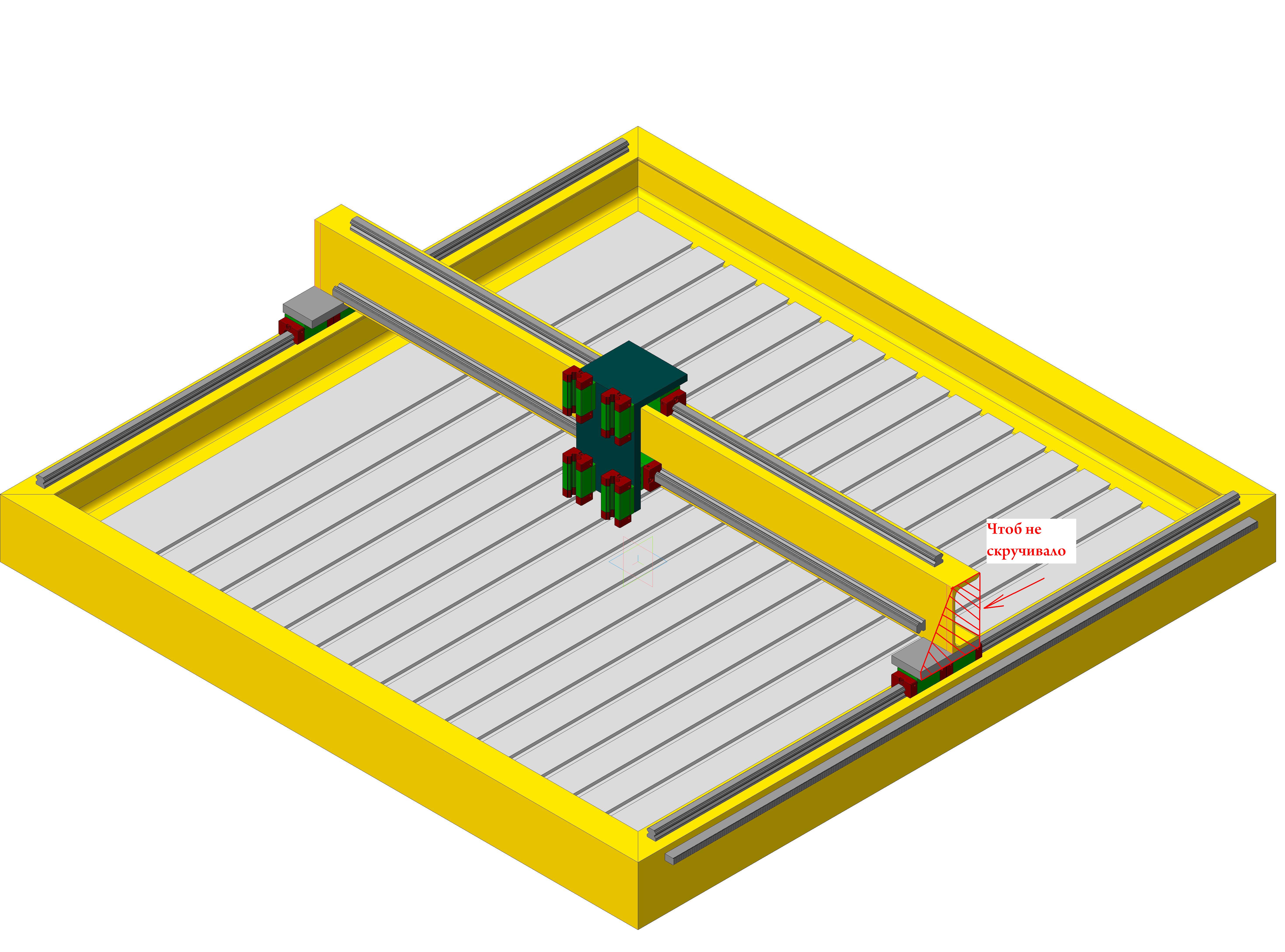 Высота портала может регулироваться разного размера пластинами под осью Y (они серого цвета). Пока оставил 10 мм. Можно и 50 мм подложить в принципе.