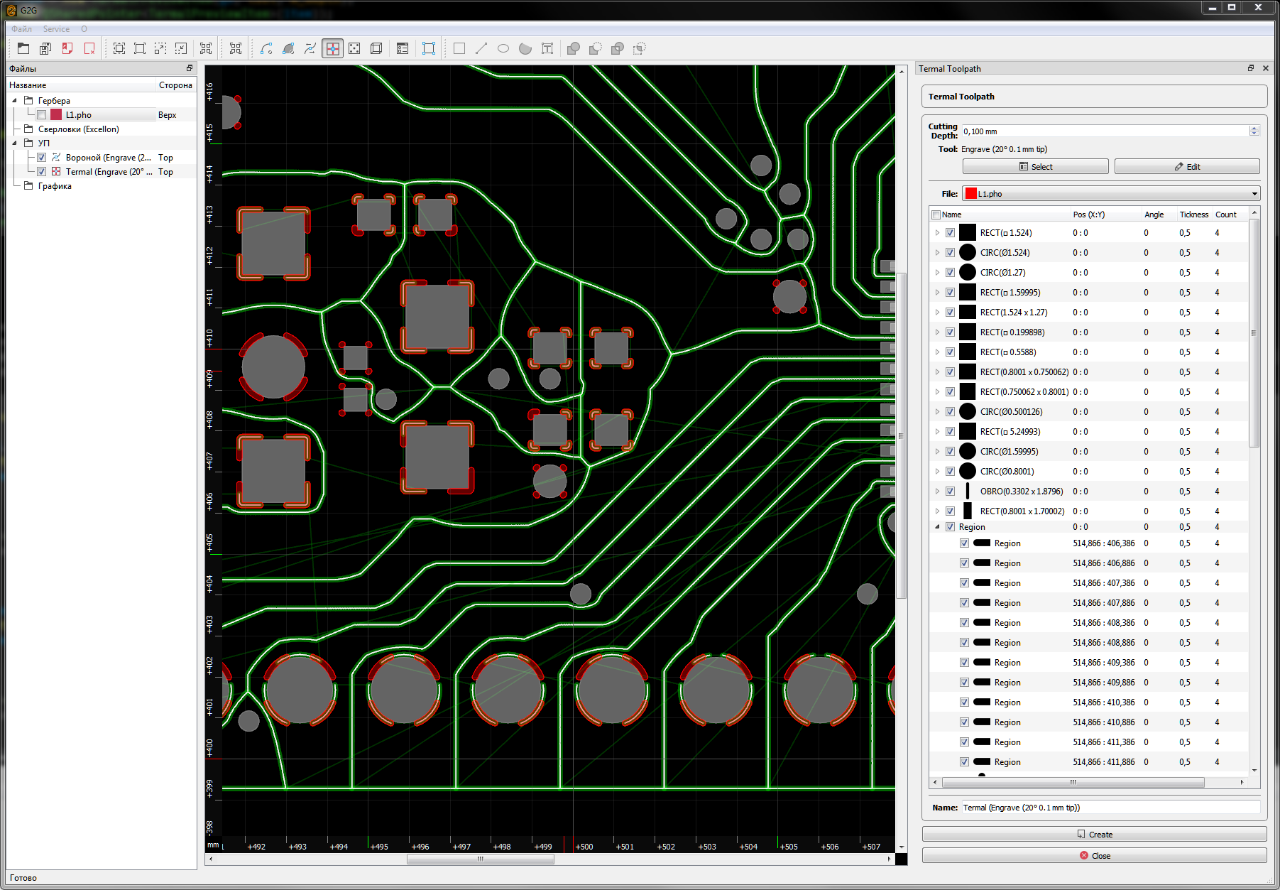 В итоге можно будет сразу получить траектории и для сверловки, и фрезеровки контура, и засветки фоторезиста.