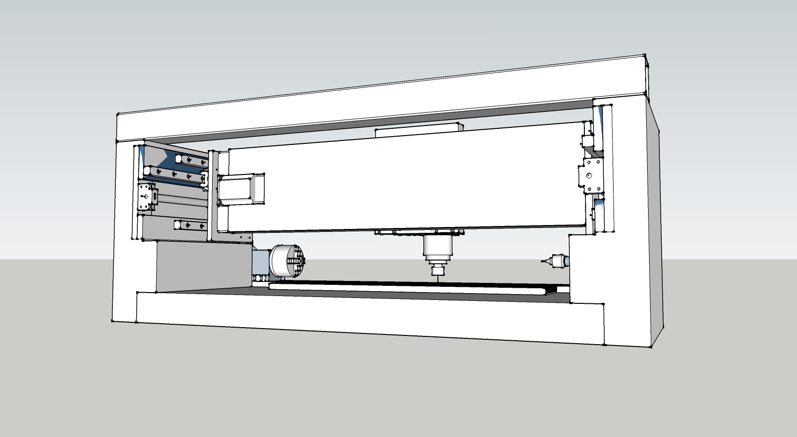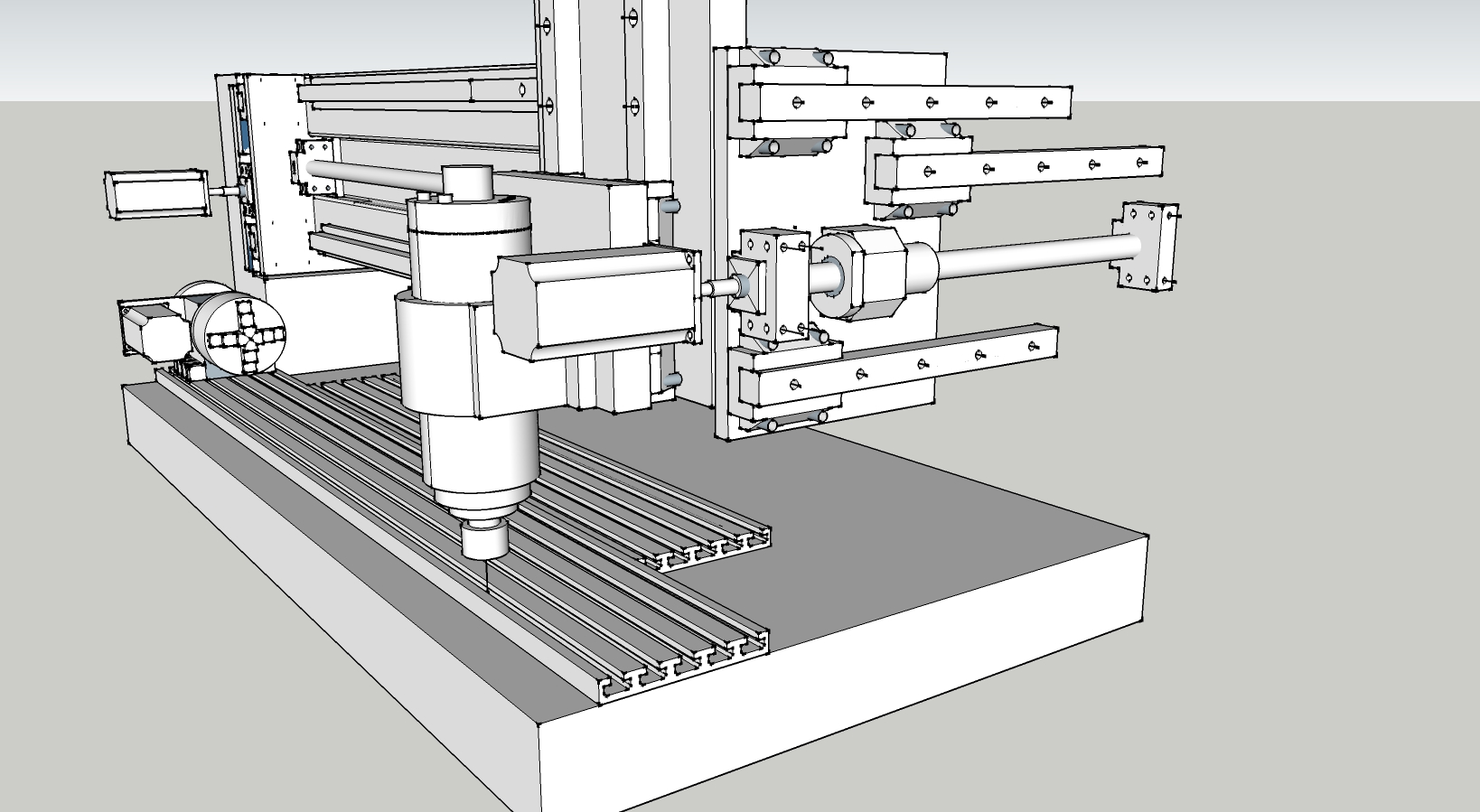 Компоновка на базе плиты диабаза 900х600х100. Стол перемещаемый 700х270х50(60)мм возможно тоже из диабаза. Плита перемещаемая по порталу диабаз 300х200х40, правда если смогу найти и получится обработать плоскостность. Плита под шпиндель по Z алюминий. Портал и ноги портала из полимергранита. Поворотная ось съёмная по необходимости. Привод Z 2,2Nm 48в швп1605 , портал 4,5Nm 60в швп2005, стол 2 мотора 2,2Nm 48в швп2005.Все моторы гибриды. ШВП китай 2005 двойные гайки. Стол перемещается на каретках 25 NSK. На портале китайские 20мм, если будет плохо, то поменяю. Шпиндель 2,2Квт 24000об/мин 800гц ER20. Плата управления usb МК2 9axis под PlanetCNC, моя первая, но думаю не последняя :hehehe: . Сделаю воздушный обдув зоны работы, и скорее всего СОЖ, так как компрессор жутко шумит, ну и сжатый воздух как всегда самый дорогой компонент. Кабинет выйдет примерно 1200х700мм, высоту пока не знаю. Направляющие и швп на столе закрою лентой, если сделаю листогиб поменяю потом на сборную.