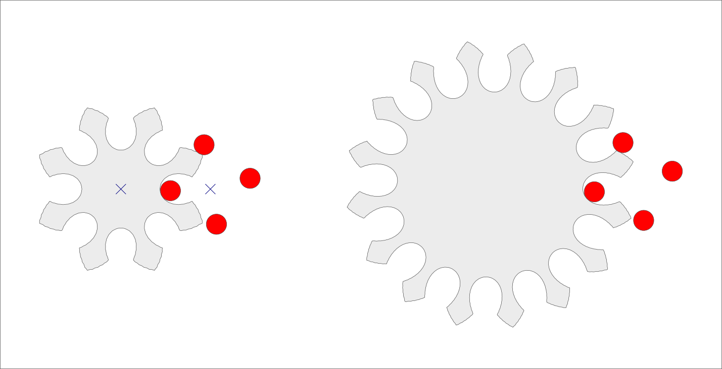 Не, тут хитрая фишка, такая шестеренка может работать с разным перемещением за оборот. Самое главное, чтобы ролики прикасались как минимум к двум зубам с противоположных сторон, тогда будет обеспечена безлюфтовая передача момента.