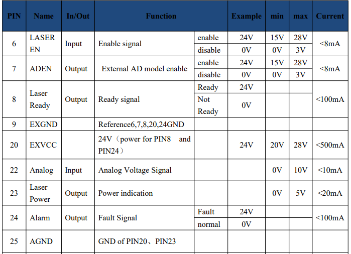 Подключили по мануалу источника, т.е. Laser modulation signal - разъем MOD, 25 пиновый интерфейсный разъём - 6 + 22 + 25 пин.