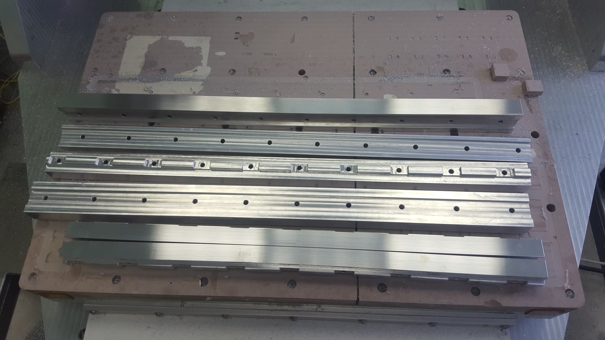 Началось веселье. Планки под рельсы согнуло таким бананом как никогда ничего не гнуло. Придется надпиливать детали и еще раз пройти базу. А на будущее пилить их из амг6 или разбить на мелкие куски.