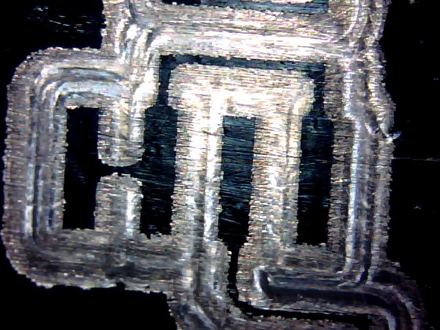 Огрехи, как уже сказал - на моей совести: несоблюдение технологии травления и, кроме того, совершенно намеренное оставление участка прокраски очевидно тонким (металл просвечиваал через синеву) - поскольку это был первый эксперимент, то решил проверить границы допусков.