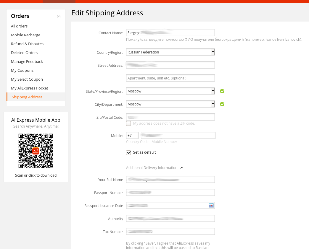 Когда отправил заказ. Это напоминает мне, что номер паспорта пуст. Я не могу его доставить.