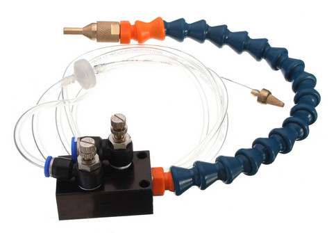 Купил сначала обсуждаемую за 3 с лишним - качество изготовления на высоком уровне, но отрегулировать маленькую подачу тяжело и при проседании давления плохо засасывает СОЖ, большой расход воздуха.