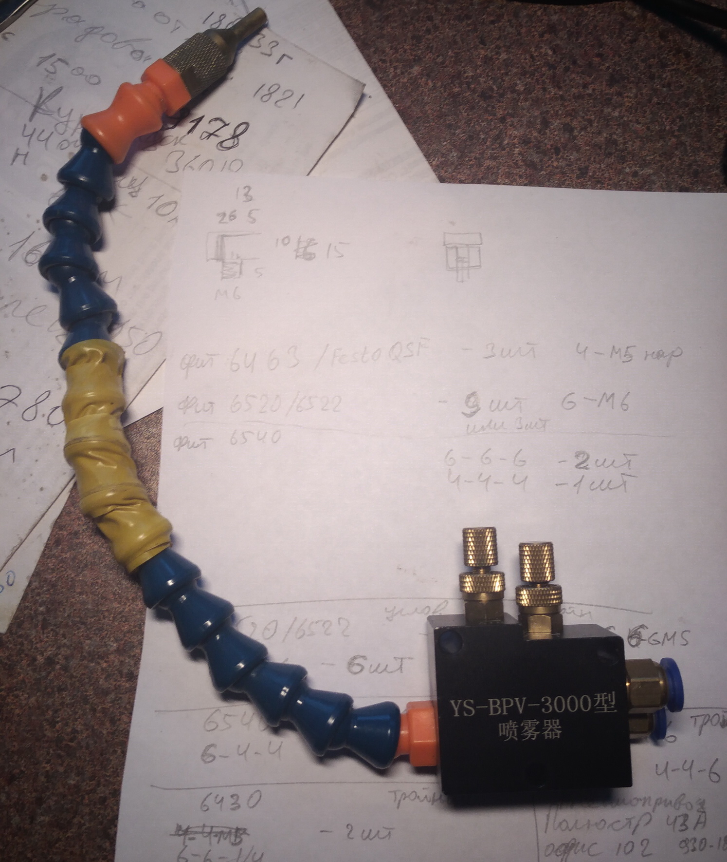 У меня такая же, только краники попроще. Вполне норм фырцкает, большой плюс, что можно отклбчить сож, оставив только воздух. Минус, если сильный поток воздуха, то сож в пар превращается, одновременно выдувать и смазывать без отдельной вытяжки никак.Kachik писал(а):