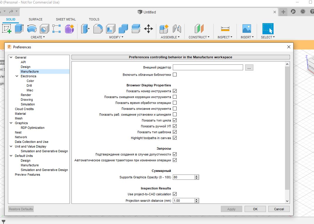 Спасибо! А не могли бы вы посмотреть и написать какая у Вас версия (номер)? (Файлы по ходу теже самые, что там прикреплены, начал копать дальше... и вроде догнал, в моей версии нет CAM закладки в программе, и если выбрать MANUFACTURE, то там уже многое переведено