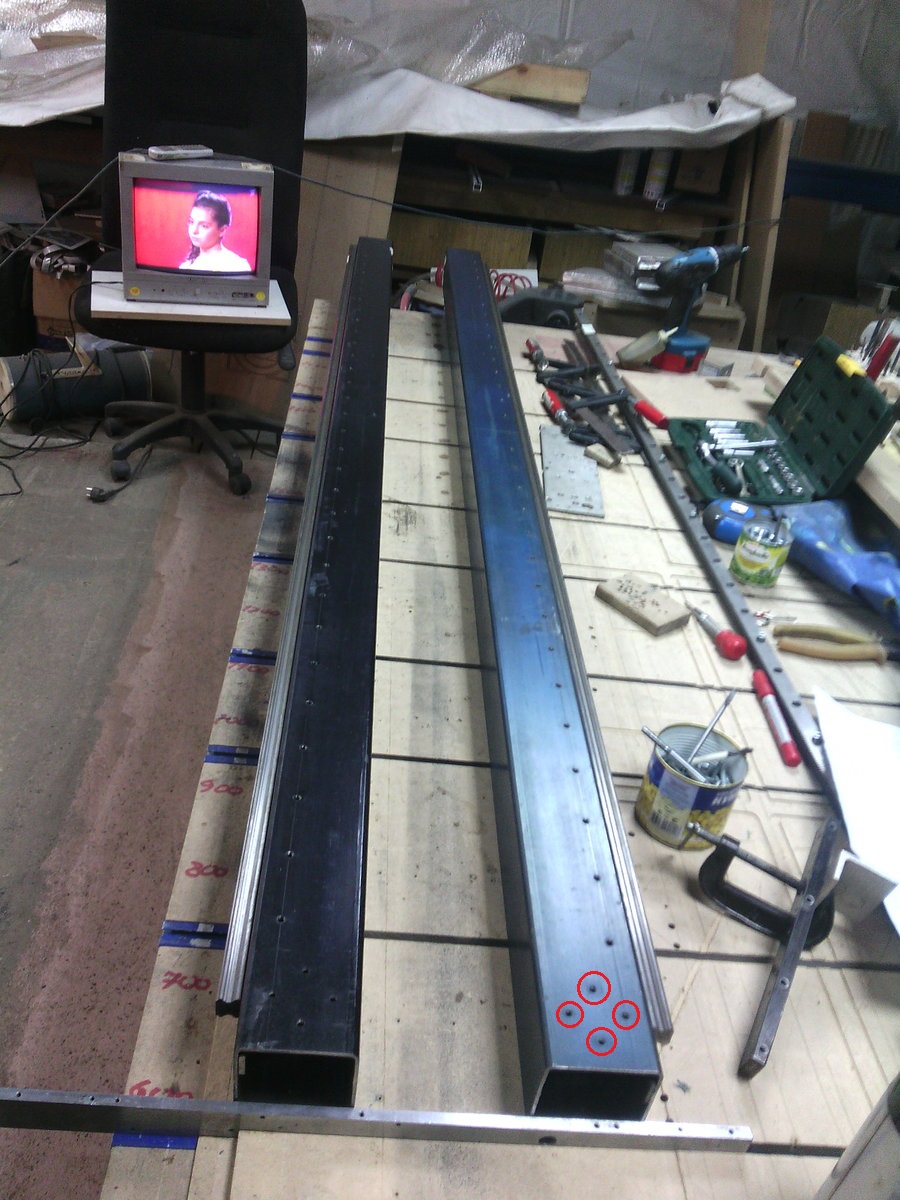 Кстати, хотел спросить, как боковины портала вырезал, вручную? И отверстия на трубах размечал и сверлил?