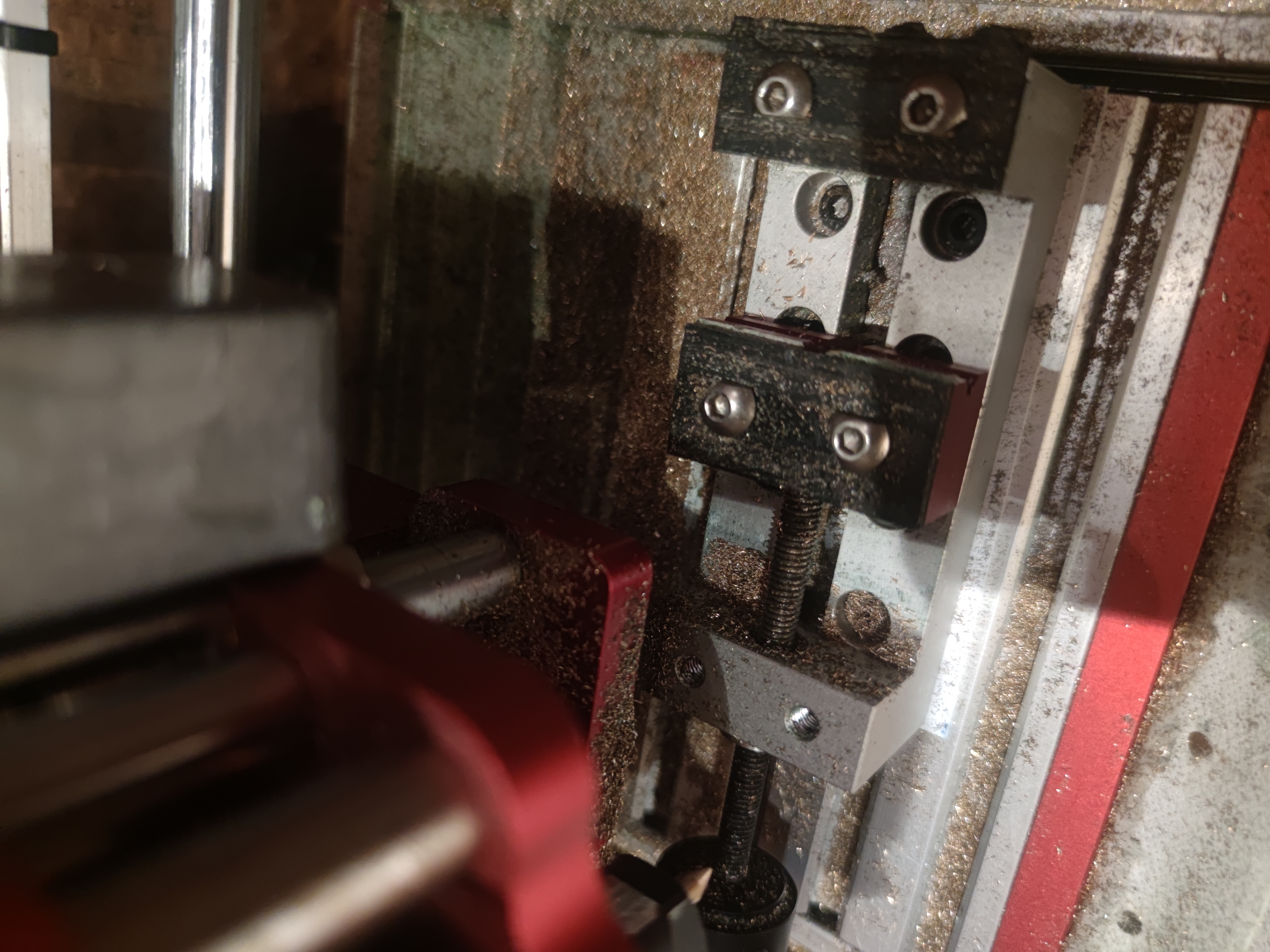 Затирало основанием резца. Оно большего диаметра, чем вынос режущей комки. И при глубоком погружении резца основание конуса терлось о него. Внешне это ничем не проявлялось, поэтому осознал не сразу. Скорость подачи была минимально возможной, поэтому терлось долго.