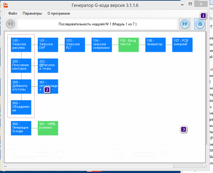 Теперь при нажатии кнопки №1 открывается схема в таком виде, и что-бы её закрыть нужно один раз кликнуть или по любому модулю например точка №2, или в пустом месте точка №3