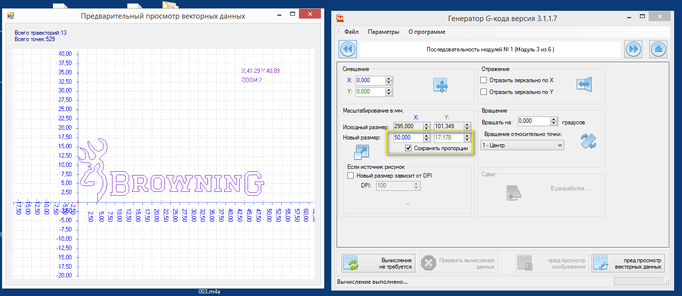 * После этого устанавливаем нужный нам размер гравируемого рисунка