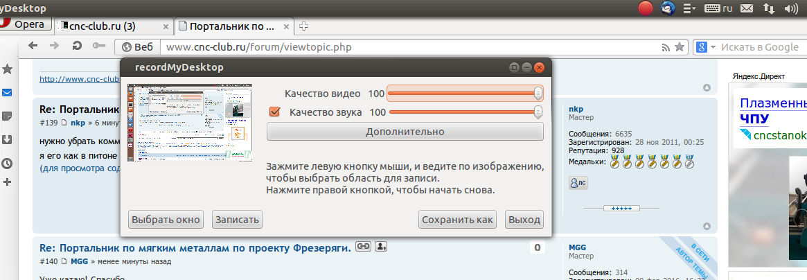 ну и красная кнопка в трее вверху - старт записи ,ну и потом - Стоп