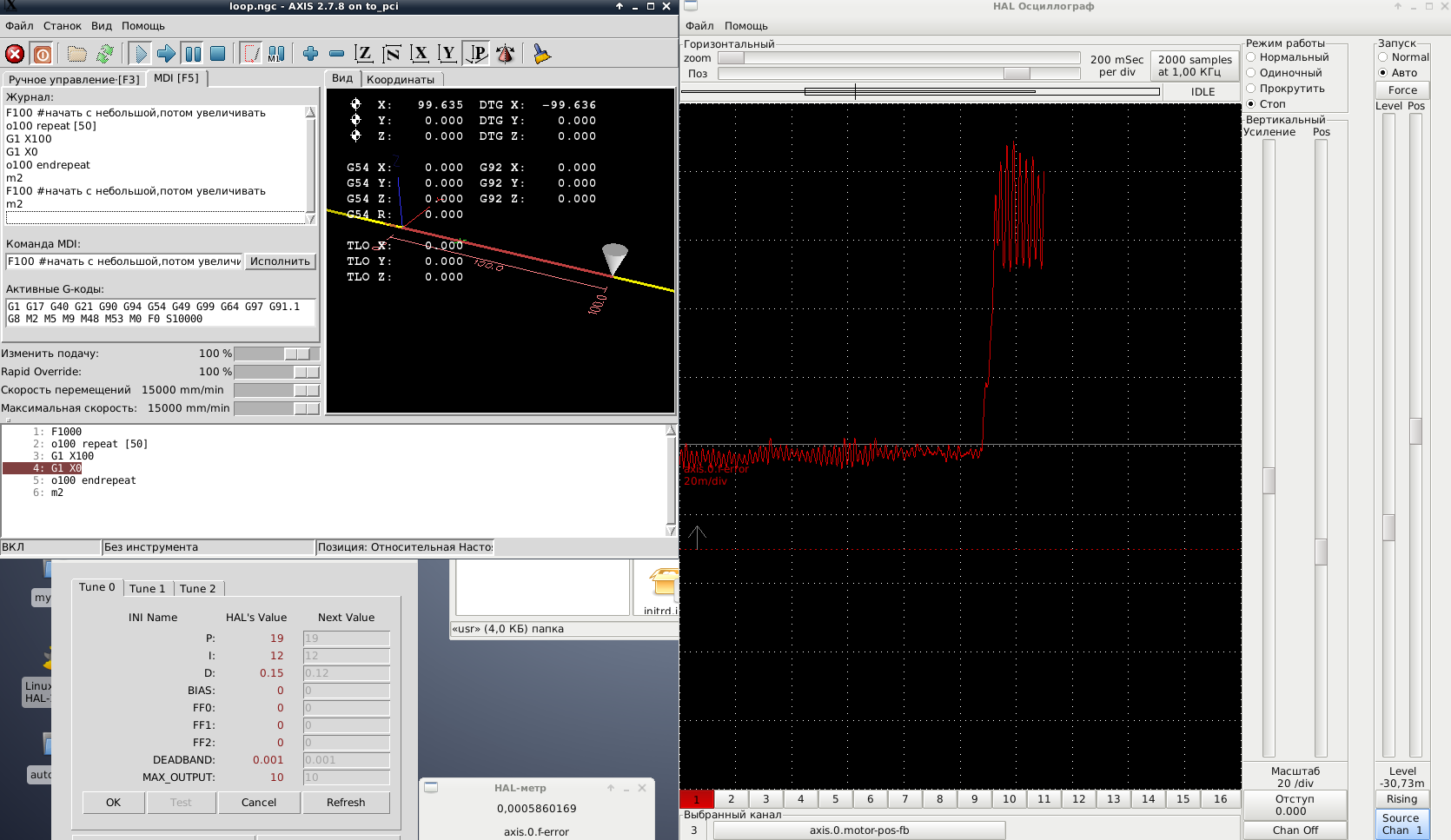 Вроде все нормально... Попробуй ограничить скорости и ускорения на обоих joint.MGG писал(а):Loaded HAL Components: