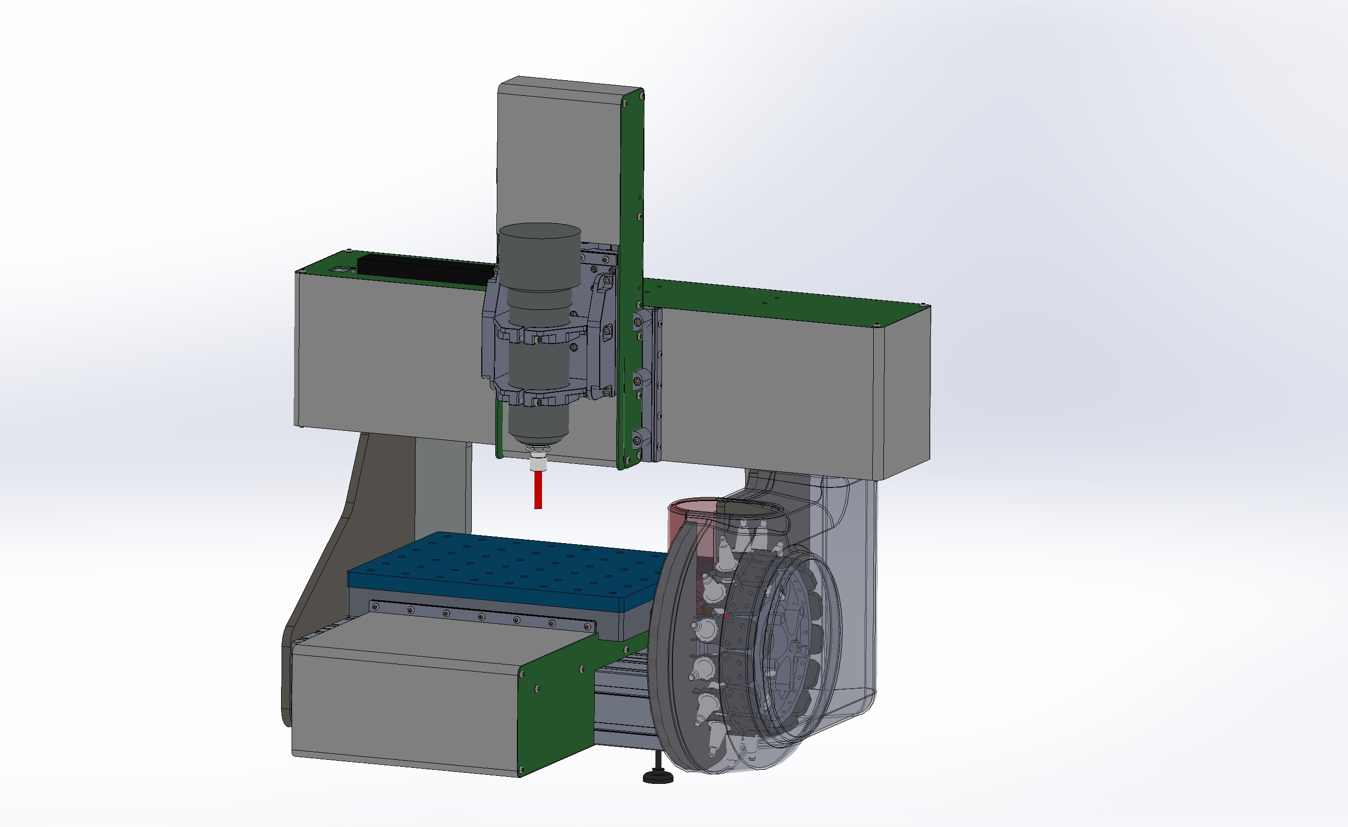 Автосменщик перенес в правую часть станка а то случайно выяснил что он слева с 4й осью пересекается. Также начал проробатывать защиту автосменщика.
