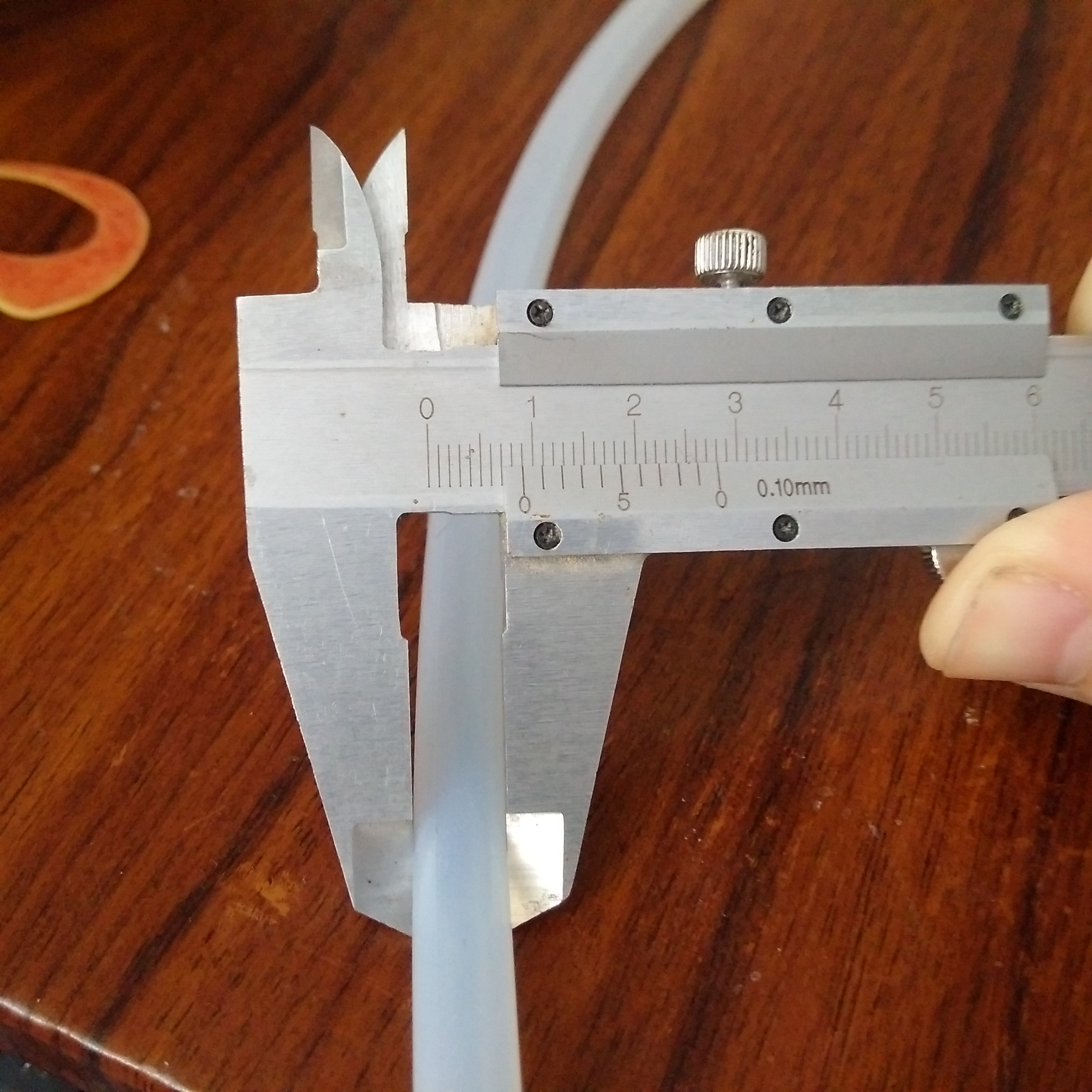 Вот купил для дальнейших экспериментов силиконовую трубку в магазине для виноделов-самогонщиков :-). Цена оказалась 160р за метр. Размеры по фоткам думаю понятны. Материал эластичный, мягче чем ПВХ. Масла и агрессивных сред не боится.