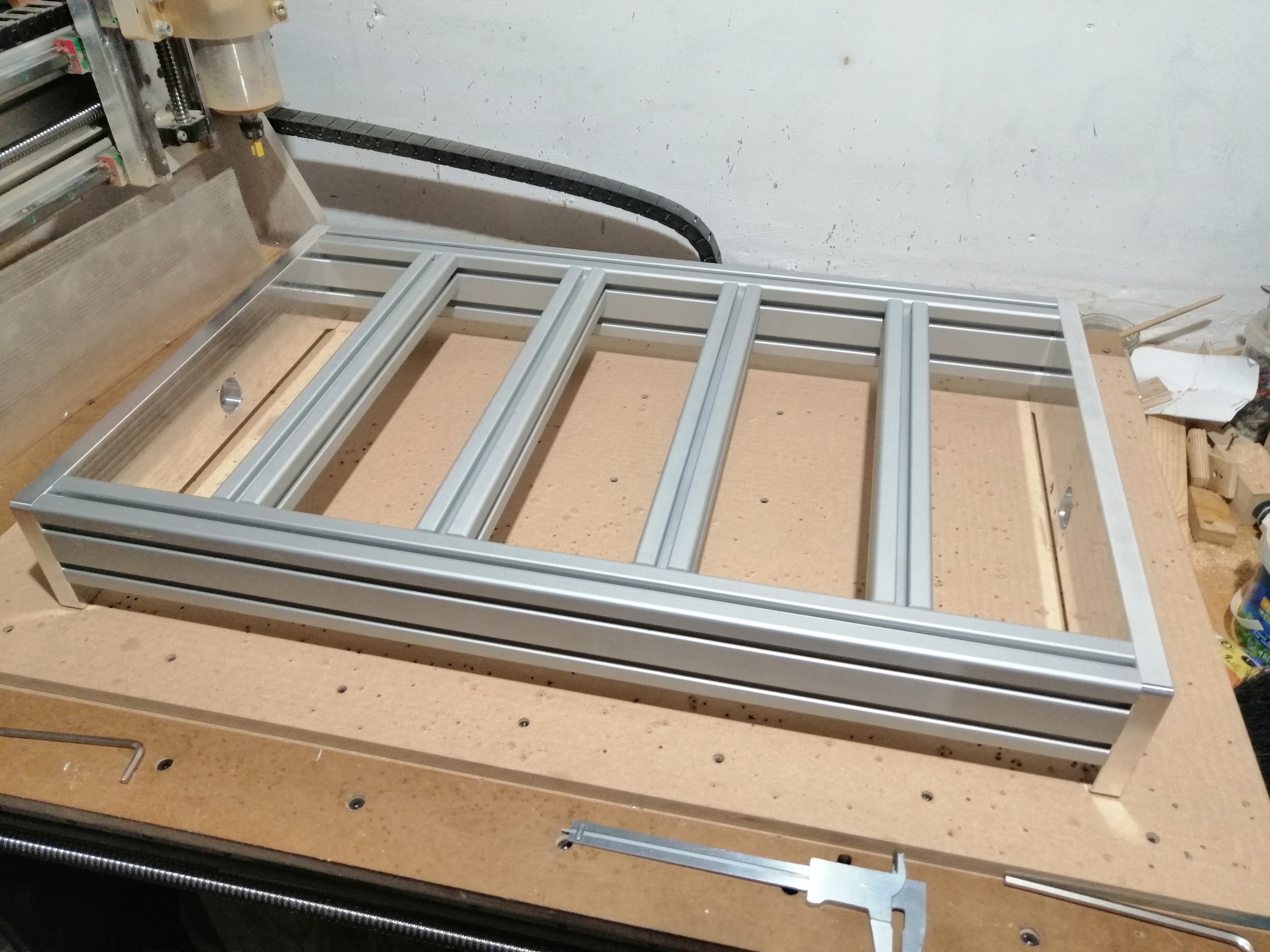Времени на фотоотчеты не особо много, но решил освежить тему. Базы под рельсы пропылил с одного установа в размер по ширине станины, после установки профиля пропылю стол. Рельсы выставлять от него соответсвенно.