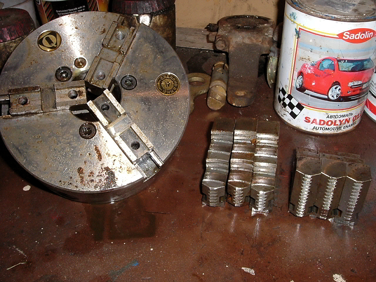Разобрал, помыл. смазал патрон. Некоторые токаря утверждают что патрон нельзя смазывать. Видать такой дейтель работал на моем токарном и никтогда не смазывал направляющие ;)