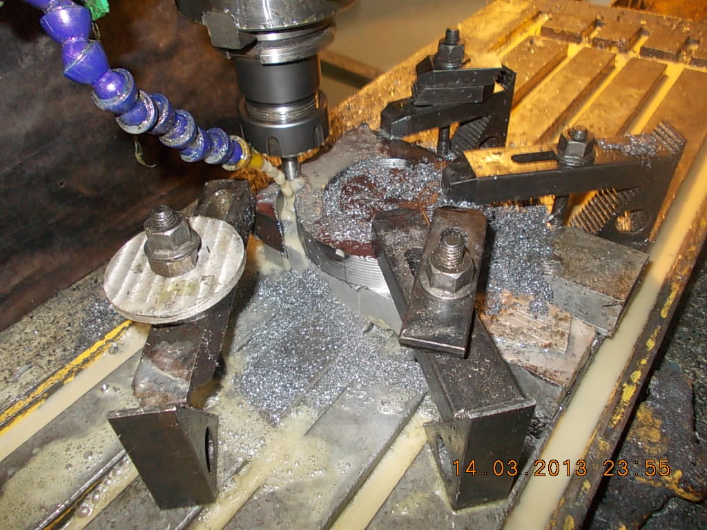 Вырезка из стали 20мм фрезой кукуруза кольца для расточки кулачков. Кукуруза грузет лучше чем обычная фреза, но подходит только для черновой обработки. После фрезеровки видны следы от зубов